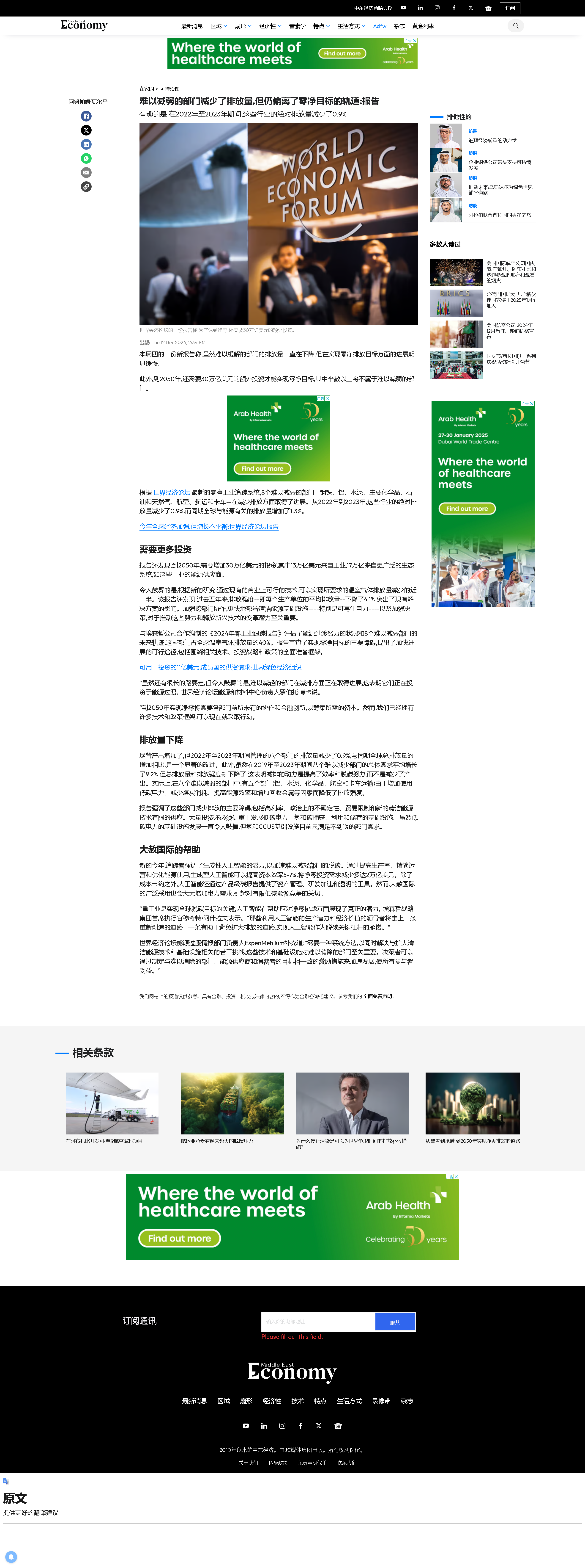 日前,世界经济论坛发布报告《净零行业动态2024年版》指出,自该系列报告推出以来,降碳难度相对较高的重点难点行业首次出现了碳排放下降的积极趋势,但2050年碳中和目标的实现仍面临着技术、基础设施、需求、资本、政策等多方面挑战。