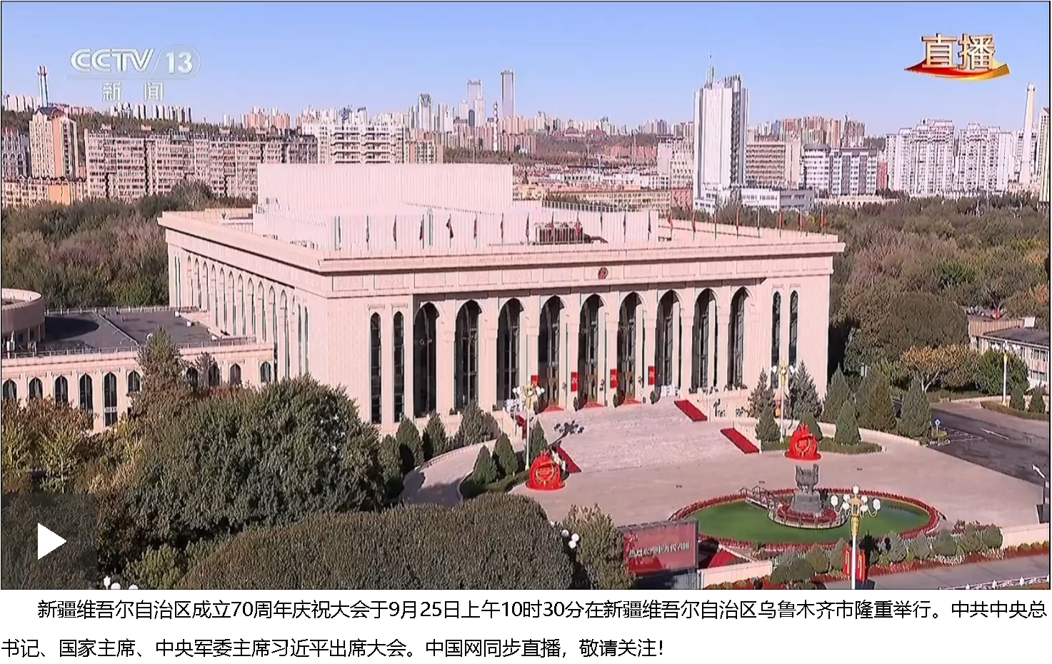 新疆维吾尔自治区成立70周年庆祝大会现在开始。