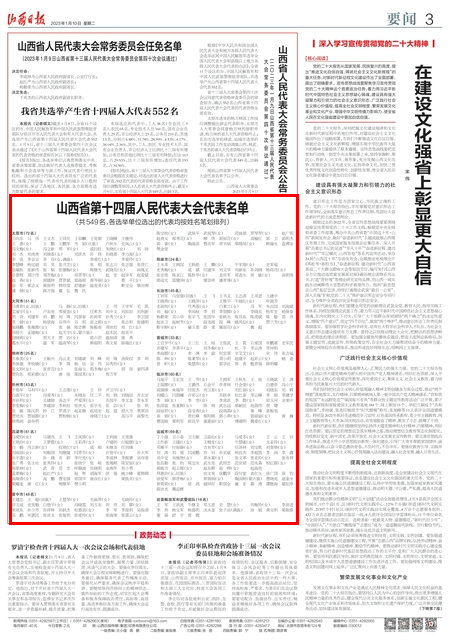 本报讯(记者杨文)截至1月8日,全省11个设区的市、中国人民解放军和中国人民武装警察驻晋部队分别召开市人民代表大会和军人代表大会,共选举产生山西省第十四届人民代表大会代表552名。1月9日,省十三届人大常委会第四十次会议表决通过了《关于山西省第十四届人民代表大会代表的代表资格的审查报告》(以下简称《报告》)。