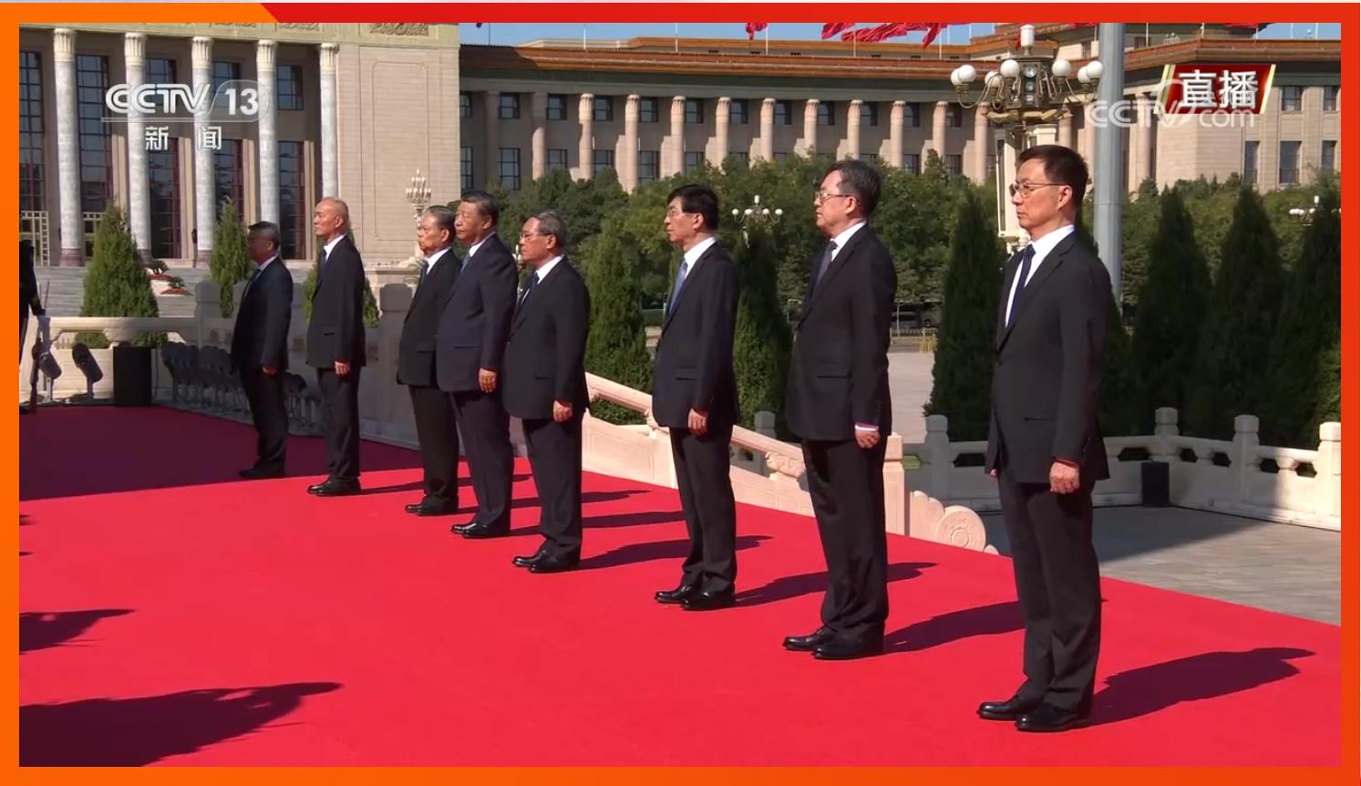 临近10时,习近平、李强、赵乐际、王沪宁、蔡奇、丁薛祥、李希、韩正等党和国家领导人来到天安门广场,出席向人民英雄敬献花篮仪式。