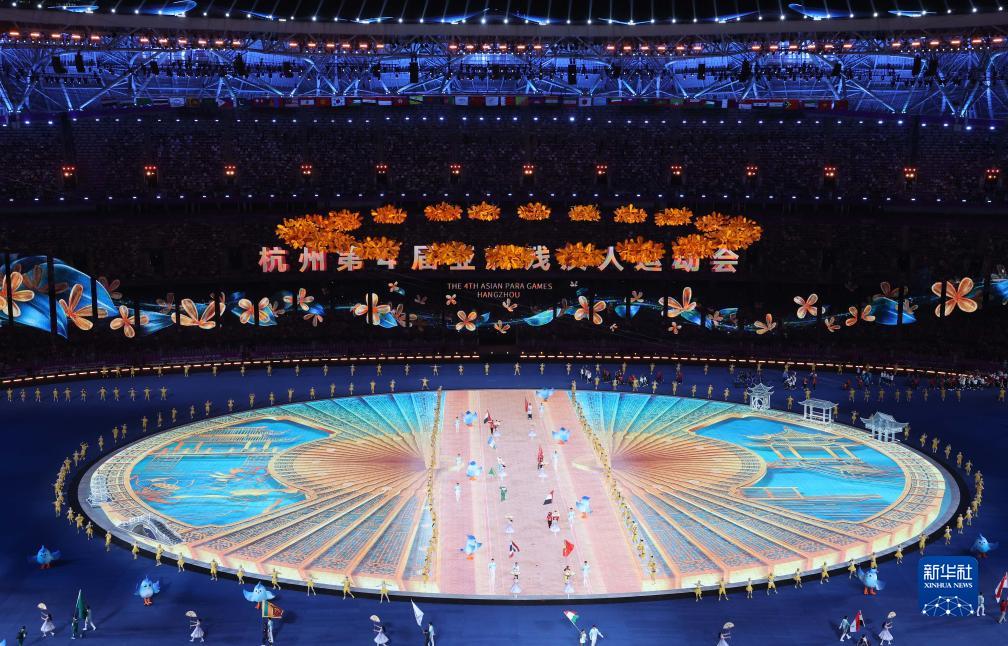 两个亚运,同样精彩。在过去7天里,来自亚洲44个国家和地区的3000多名残疾人运动员勇于挑战、超越自我、顽强拼搏,展现奋进力量和卓越品格,共同奏响生命的强音。中国践行“阳光、和谐、自强、共享”的办赛理念,以出色的赛事组织、完善的无障碍设施,赢得了亚残奥委员会大家庭和国际社会的广泛好评。中国体育代表团获得214枚金牌、521枚奖牌,名列亚残运会金牌榜和奖牌榜首位。