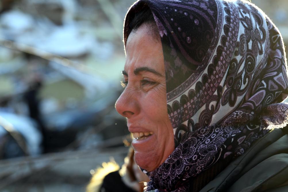 2月8日,在土耳其哈塔伊的一处地震废墟,当地居民等待亲人的消息。新华社记者沙达提摄