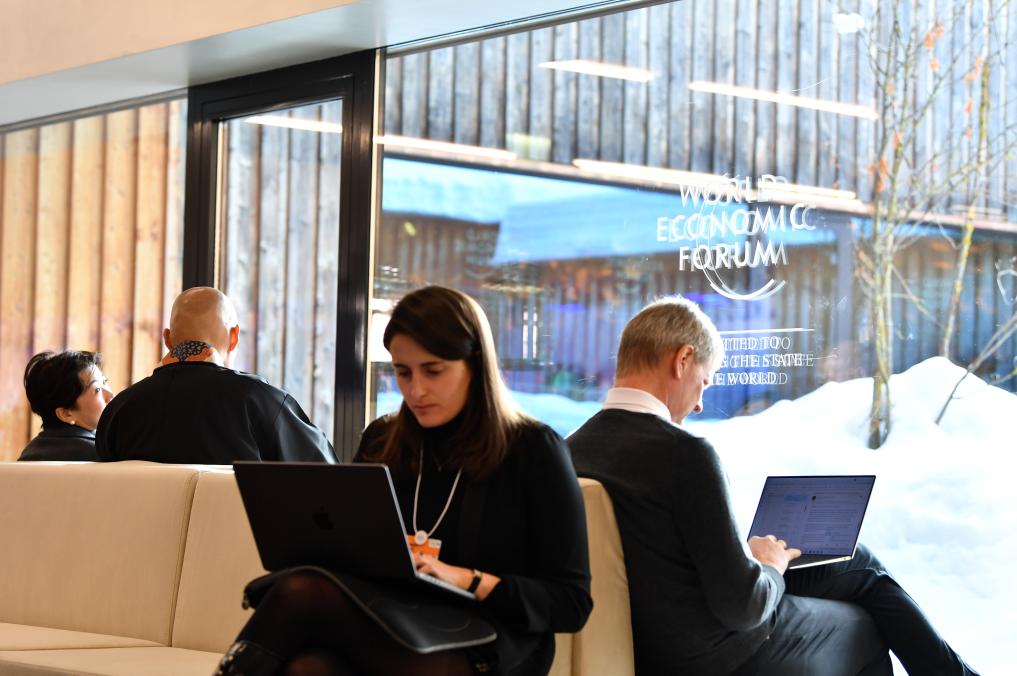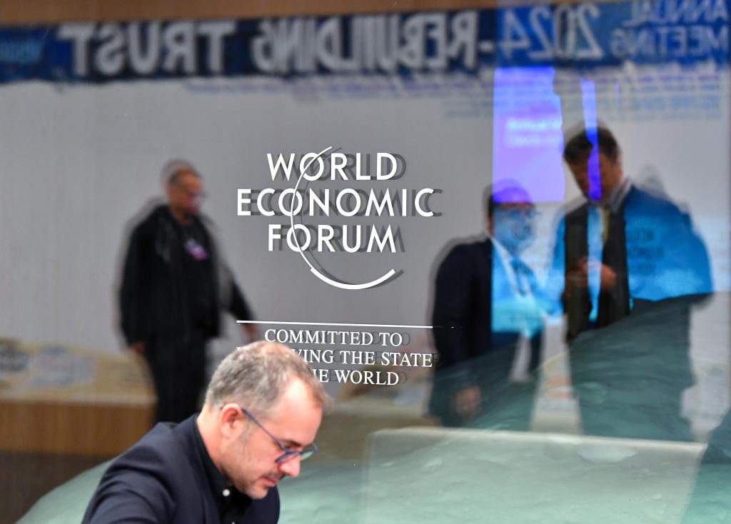 1月15日,在瑞士达沃斯,与会者参加世界经济论坛2024年年会。新华社记者连漪摄
