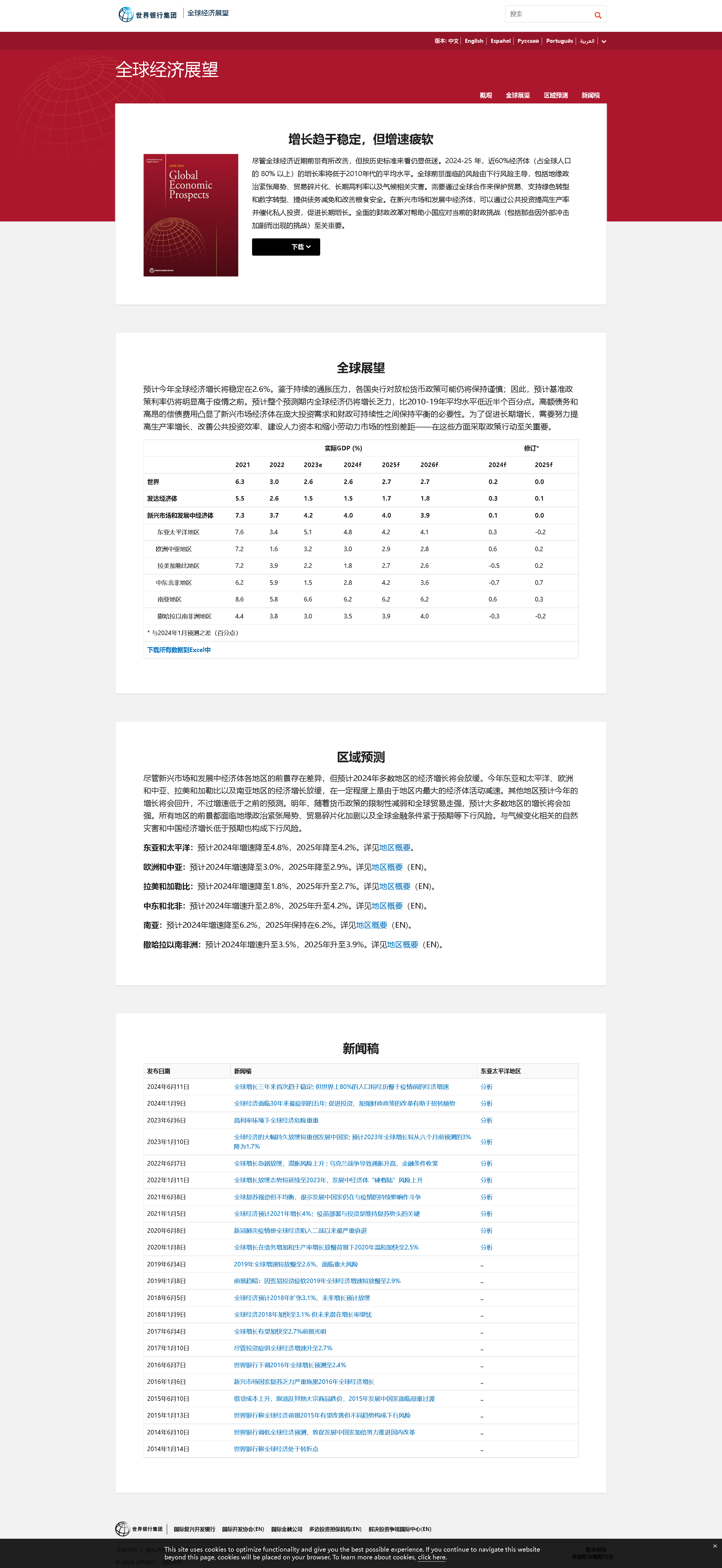 央视网消息:世界银行6月11日发布最新一期《全球经济前景》报告称,当前全球经济形势好于年初,将2024年全球经济增长预期从1月的2.4%提升到2.6%,为三年来首次实现稳定增长。
