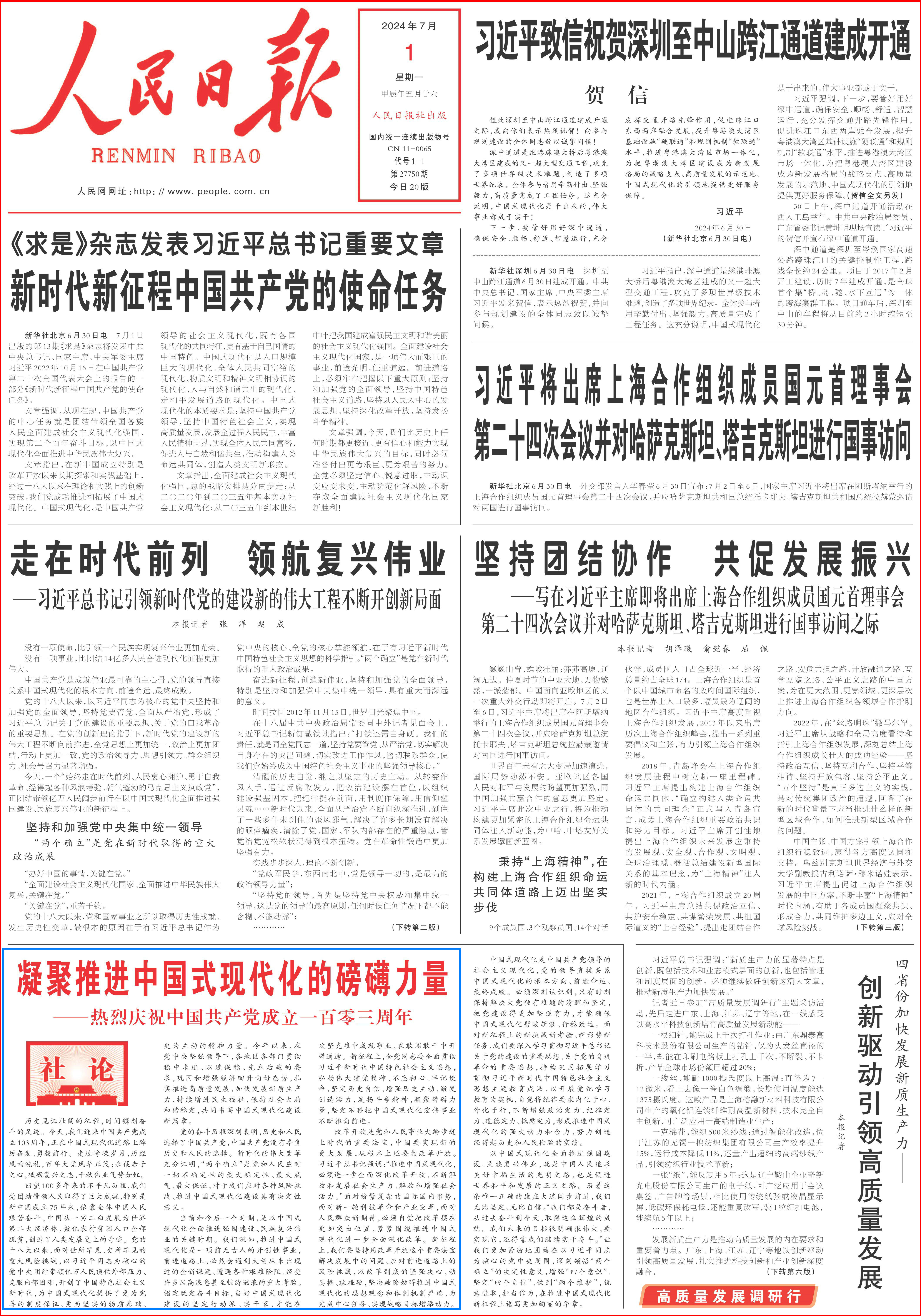 2024凝聚推进中国式现代化的磅礴力量(社论)——热烈庆祝中国共产党成立一百零三周年