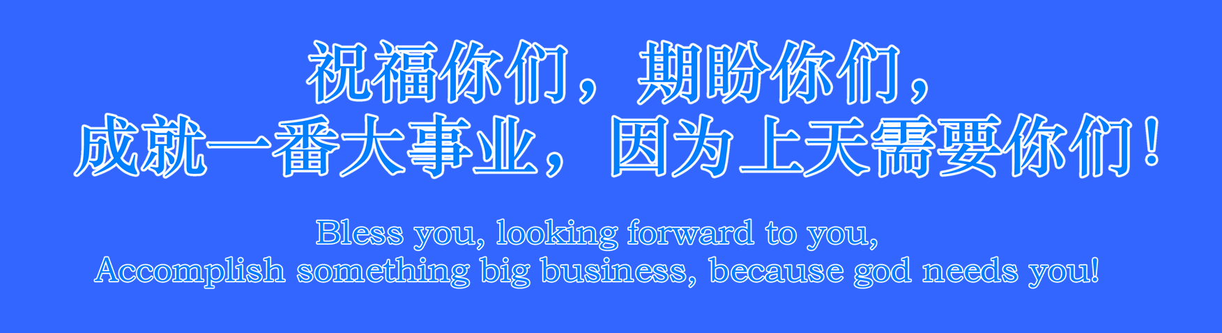 祝福你们,期盼你们,成就一番大事业,因为上天需要你们!