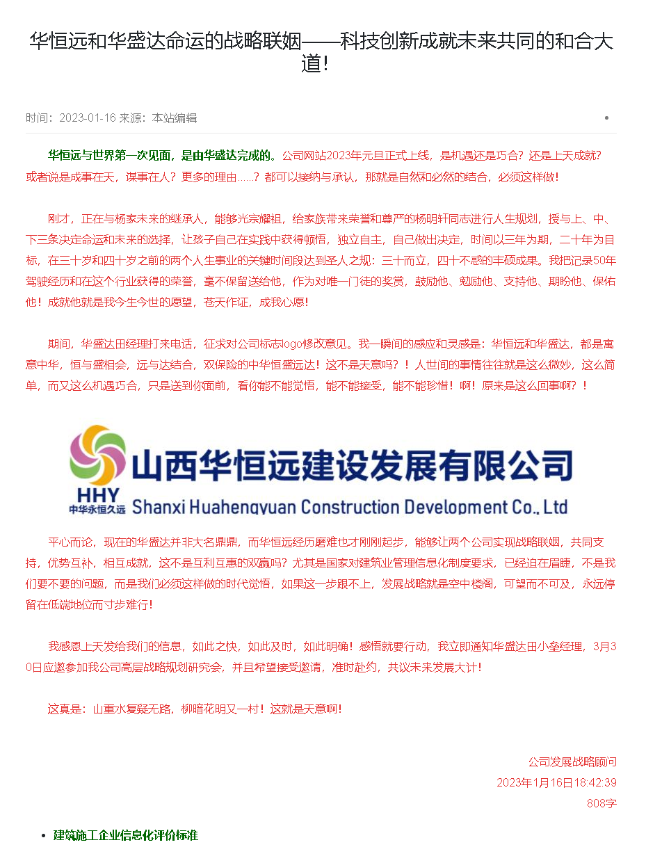 平心而论,现在的华盛达并非大名鼎鼎,而百乐博bIbo经历磨难也才刚刚起步,能够让两个公司实现战略联姻,共同支持,优势互补,相互成就,这不是互利互惠的双赢吗?尤其是国家对建筑业管理信息化制度要求,已经迫在眉睫,不是我们要不要的问题,而是我们必须这样做的时代觉悟,如果这一步跟不上,发展战略就是空中楼阁,可望而不可及,永远停留在低端地位而寸步难行!808字