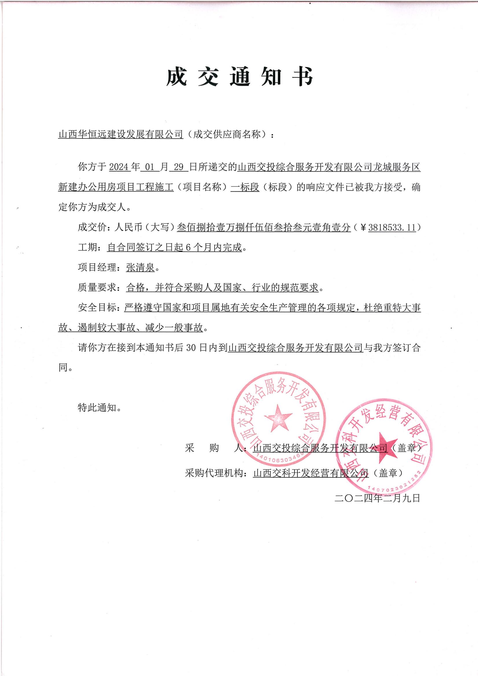 山西交投综合服务开发有限公司龙城服务区新建办公用房项目工程施工