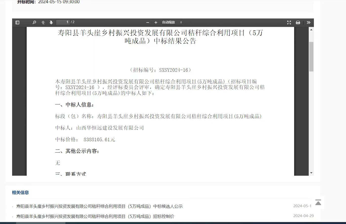 2024年寿阳县羊头崖乡村振兴投资发展有限公司秸秆综合利用项日