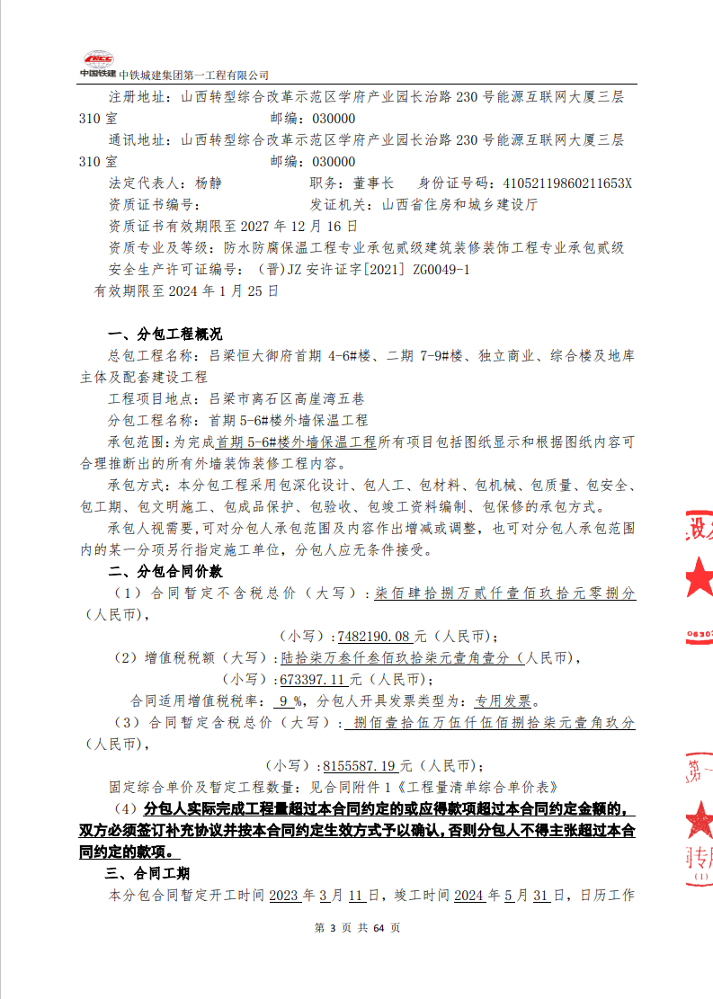 吕梁恒大御府首期 4-6#楼、二期 7-9#楼、独立商业、综合楼及地库 主体及配套建设工程