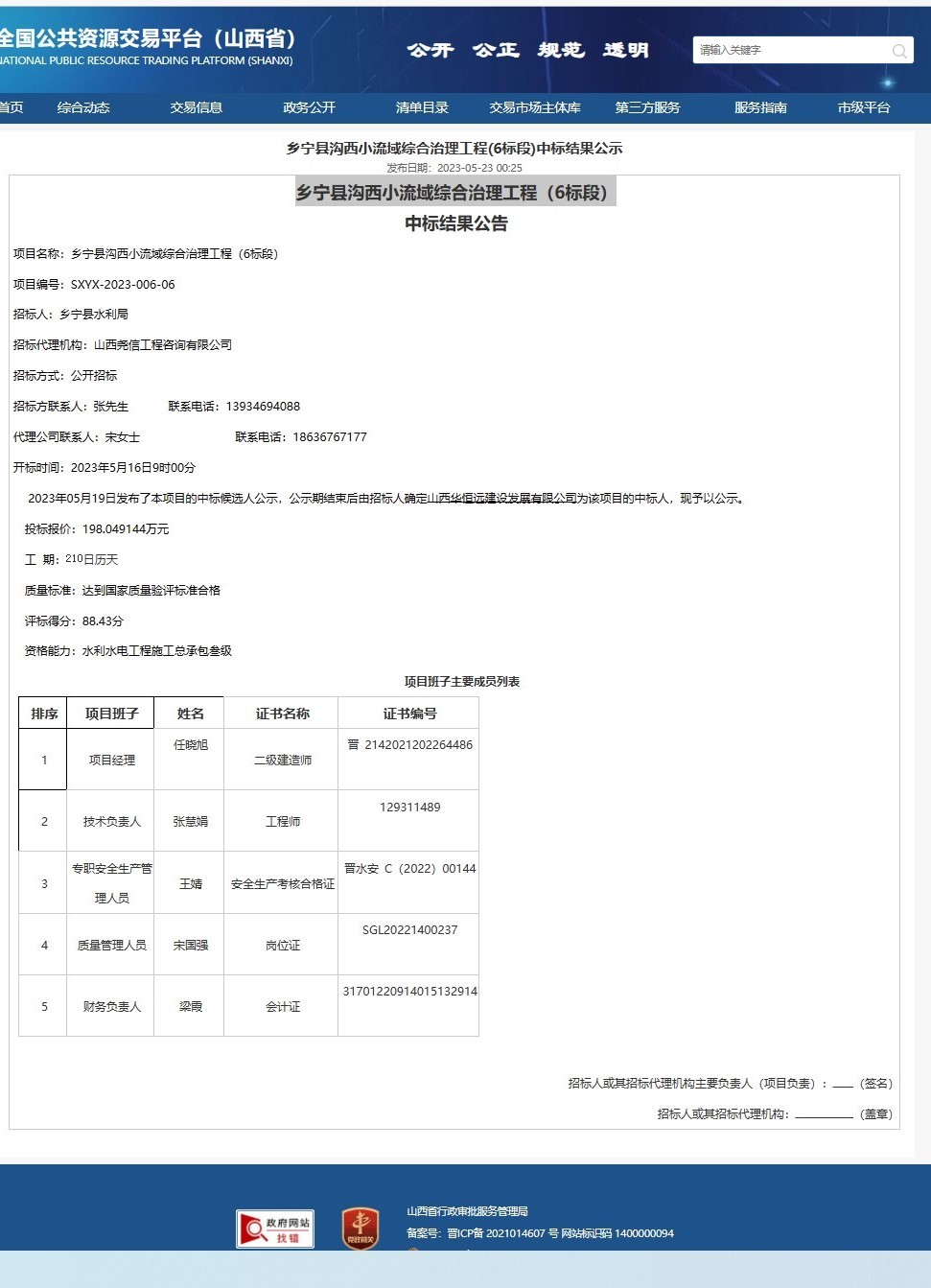 乡宁县沟西小流域综合治理工程(6标段)