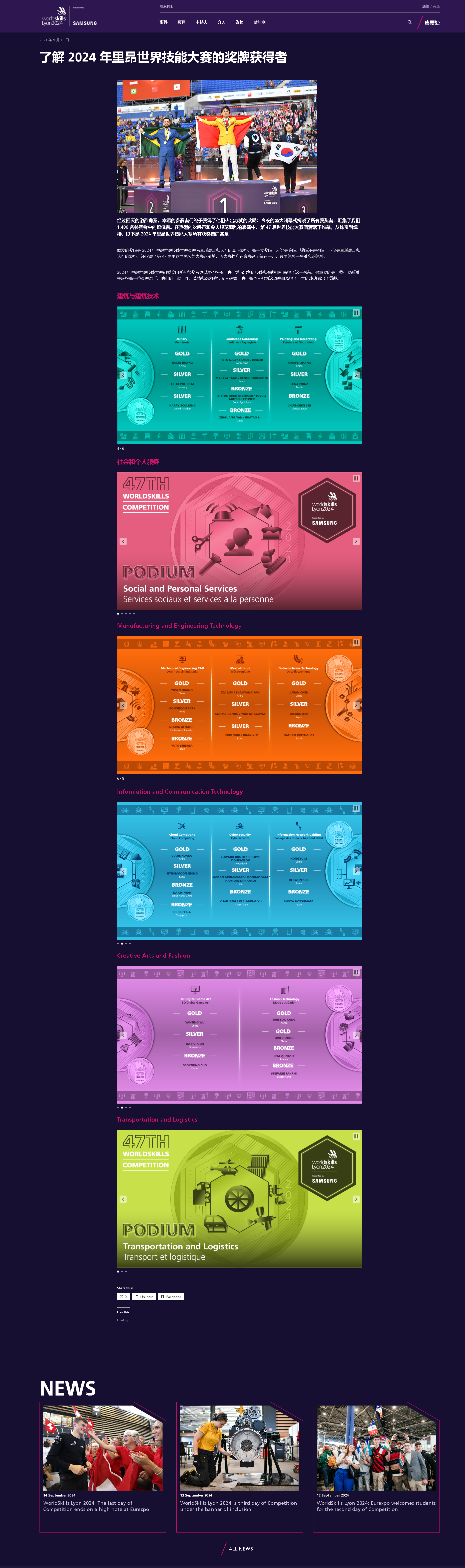 中国选手获得金牌的项目包括飞机维修、汽车技术、自主移动机器人、3D数字游戏艺术、烹饪(西餐)等。其中,数控铣项目实现金牌“五连冠”,砌筑、时装技术两个项目实现“四连冠”。