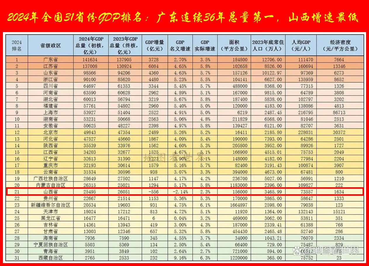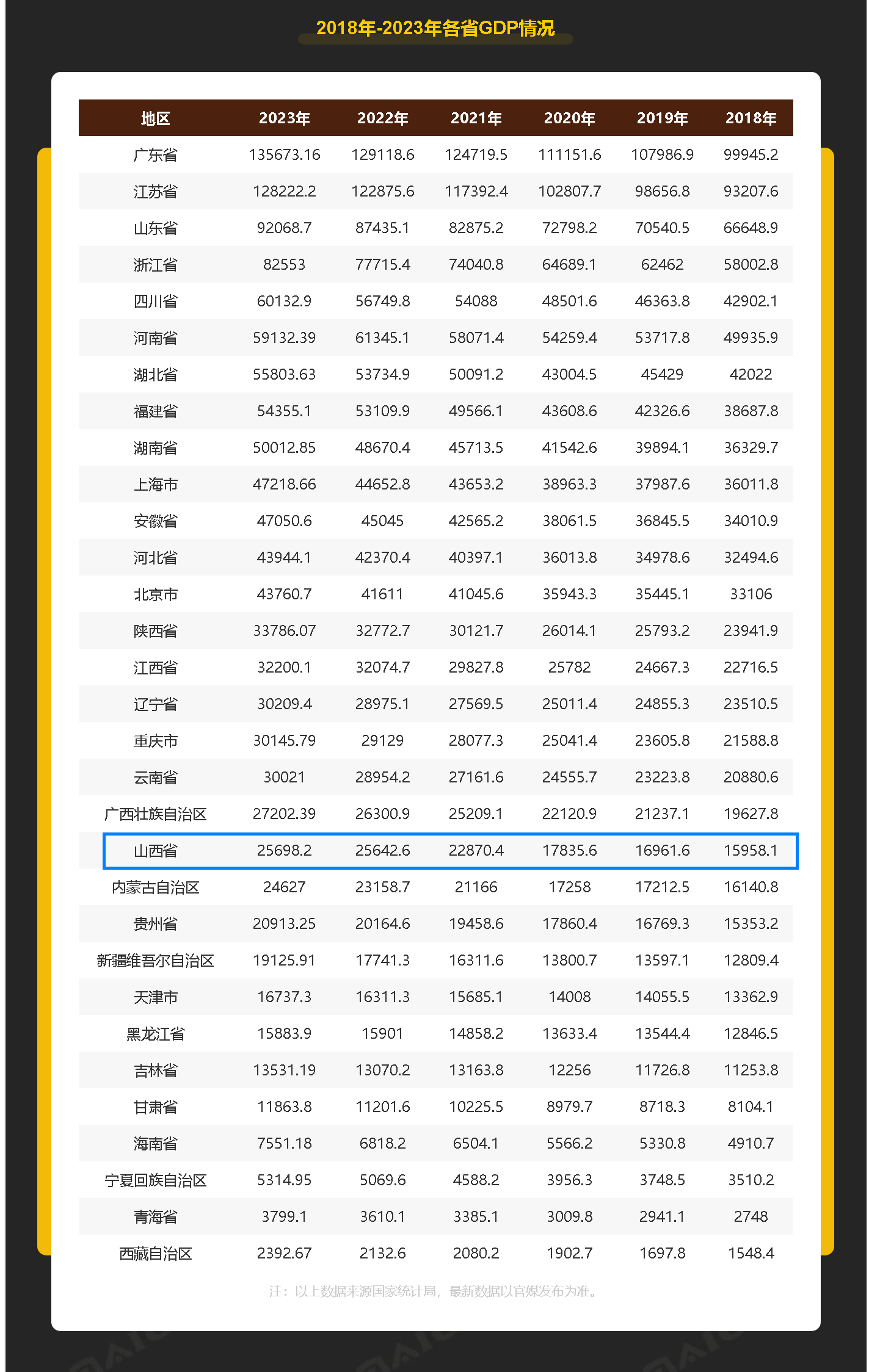 2024年山西省GDP为25494.69亿元比上年增长2.3%