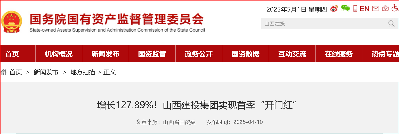 37 增长127.89%!山西建投集团实现首季“开门红” www.sasac.gov.cn/n2588025...2025-04-10