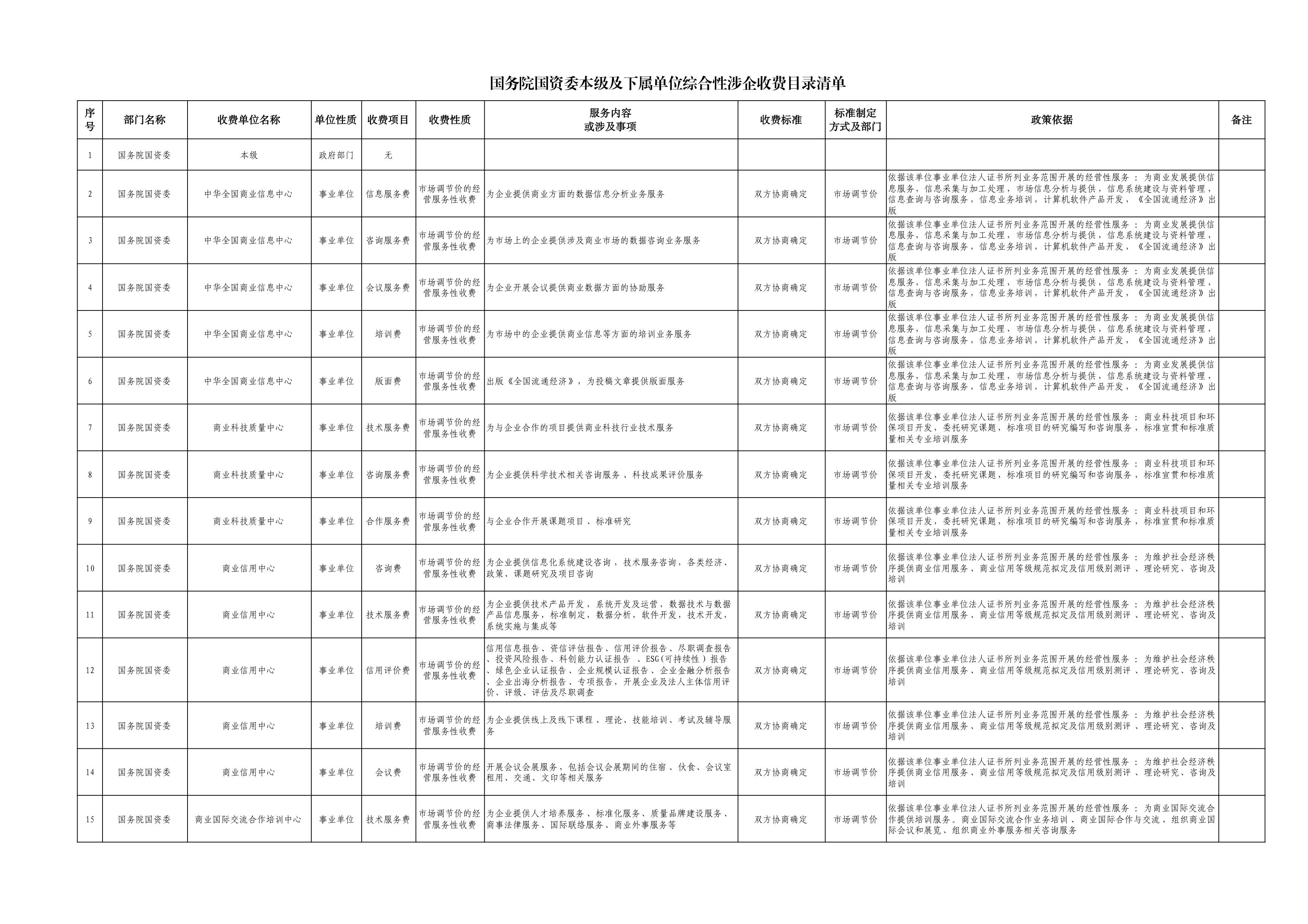 【行业动态】国务院国资委本级及下属单位综合性涉企收费目录清单