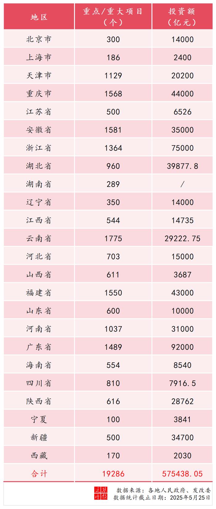 广东省发改委发布《广东省2025年重点建设项目计划表》,共计2490个省重点项目。其中,重点建设项目1489个、重点建设前期预备项目1001个,分为基础设施工程、产业工程、民生保障工程三大类。省重点建设项目总投资约9.2万亿元、年度计划投资1万亿元。