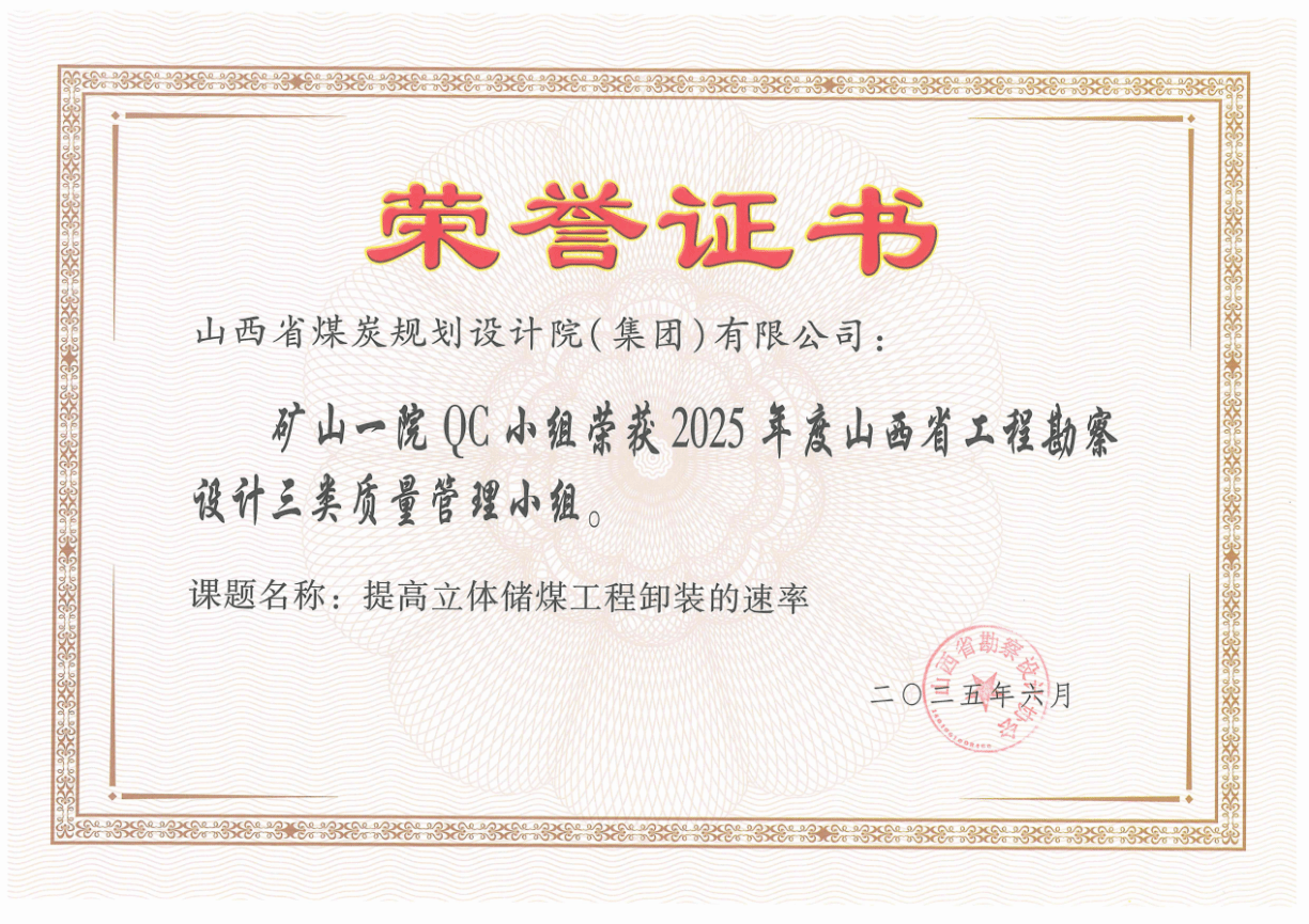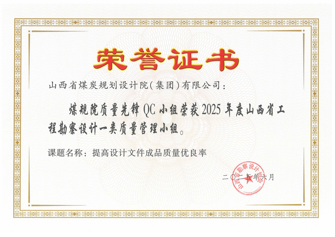 近日,2025年度山西省工程勘察设计质量管理小组活动成果评定结果揭晓,山西建投煤规院集团参评的“提高设计文件成品质量优良率”等4项QC小组活动成果脱颖而出,斩获一等奖1项、二等奖1项、三等奖2项,以扎实的质量管控实力赢得行业认可。