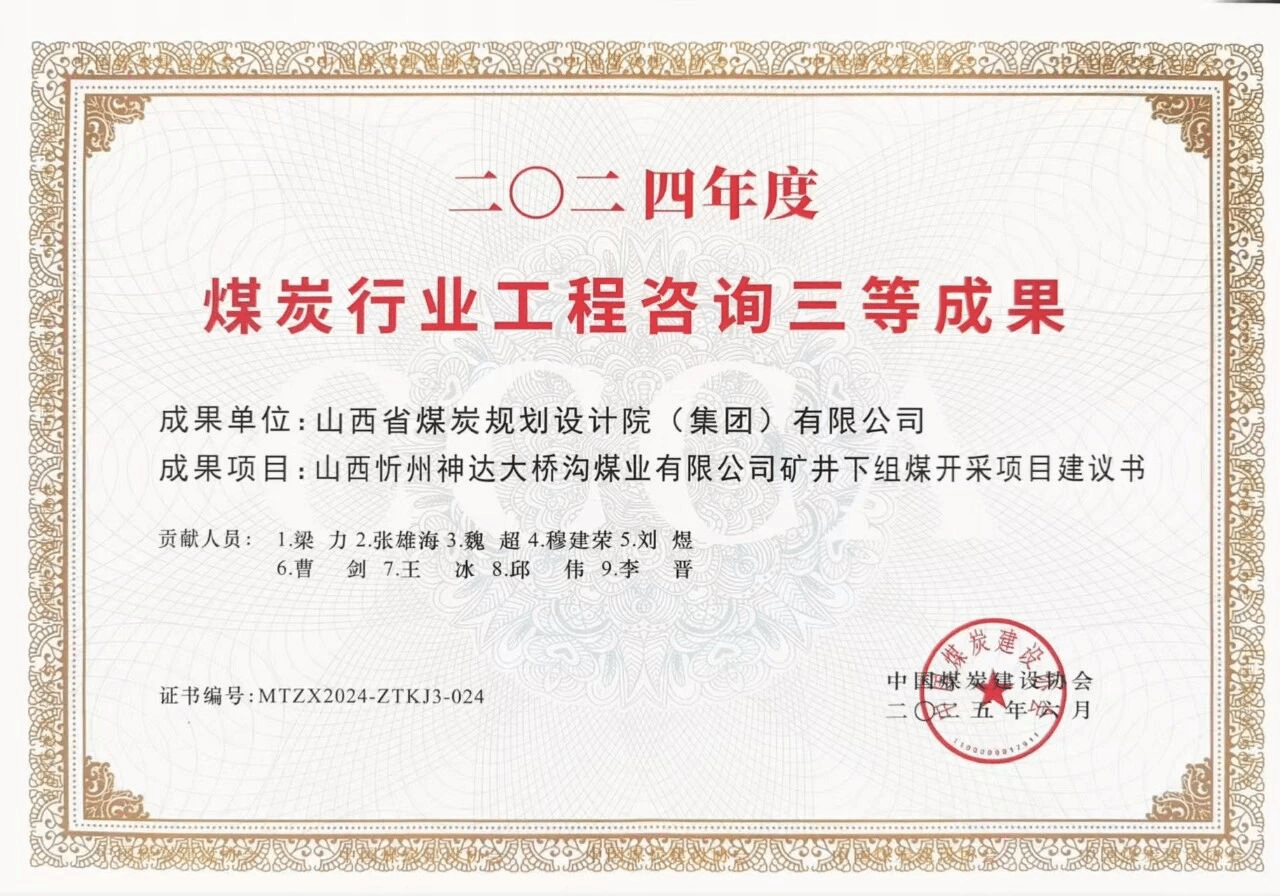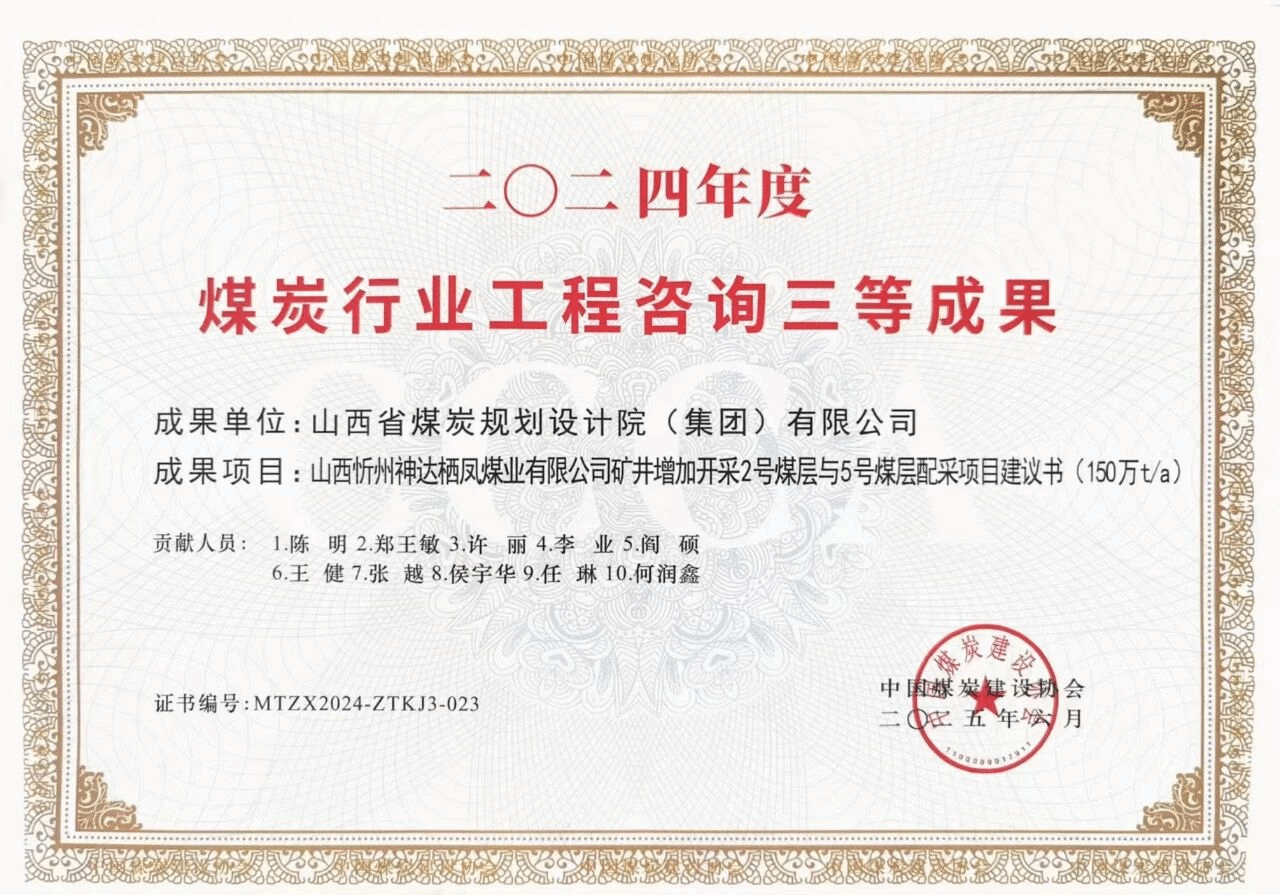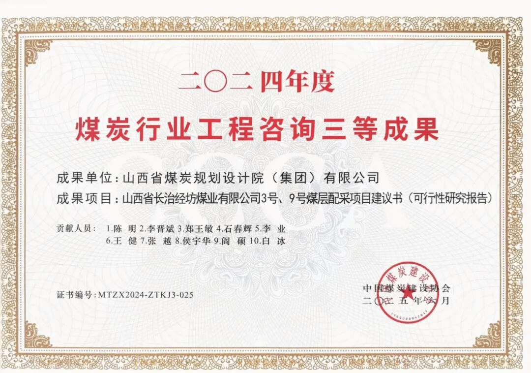近日,中国煤炭建设协会公布2024年度煤炭行业优秀工程咨询成果获奖名单,山西建投煤规院集团斩获四项煤炭行业(部级)工程咨询三等成果奖。
