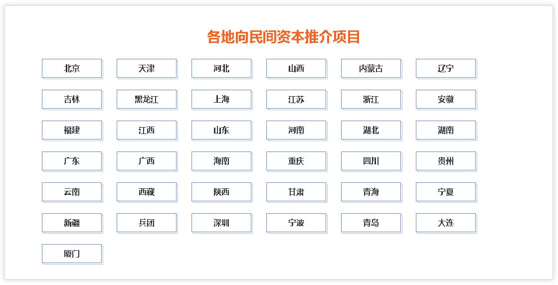 国家发展改革委有关负责人介绍,本次推介的项目,从行业领域看,城建、农业、旅游等项目数量较多,城建、公路、水路港口等项目规模较大。从地区分布看,东部、中部、西部、东北地区分别推介2213个、1020个、1497个、164个项目。从参与方式看,民间资本可以通过控股或参股项目公司等多种方式,参与重点项目建设运营。