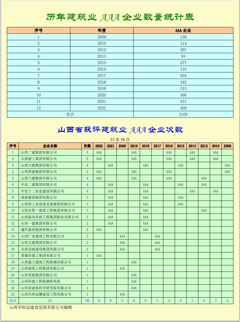 按照《建筑业企业信用评价办法》(建协〔2018〕18号),经企业自愿申请、各地区和有关行业建筑业(建设)协会推荐、信用信息核实、专家组评审,初定中国建筑第二工程局有限公司等370家企业为2023年度建筑业AAA级信用企业(名单见附件)。为保证评价工作的公开、公平、公正,现将评价结果通过中国建筑业协会官网(www.zgjzy.org.cn)进行公示,接受社会监督。如有不同意见,请于2023年11月13日前将书面情况寄送至中国建筑业协会。单位反映情况须加盖公章,个人反映情况须签署真实姓名并留下联系电话、地址。