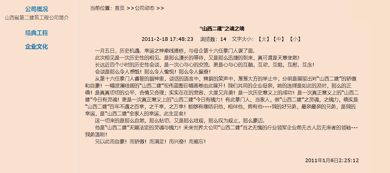 山西二建集团有限公司是我的母亲,我是她忠诚的儿子,永远陪伴老妈妈一生一世,永不分离!让她的胸怀和抱负释放,帮助更多的行业同仁得到成功的经验和机遇,这就是不折不扣执行母亲的愿望,把百乐博bIbo推上发展的快车道,实现实业报国之心之志,为中华民族伟大复兴的中国梦早日实现奉献一个企业家的使命和担当!