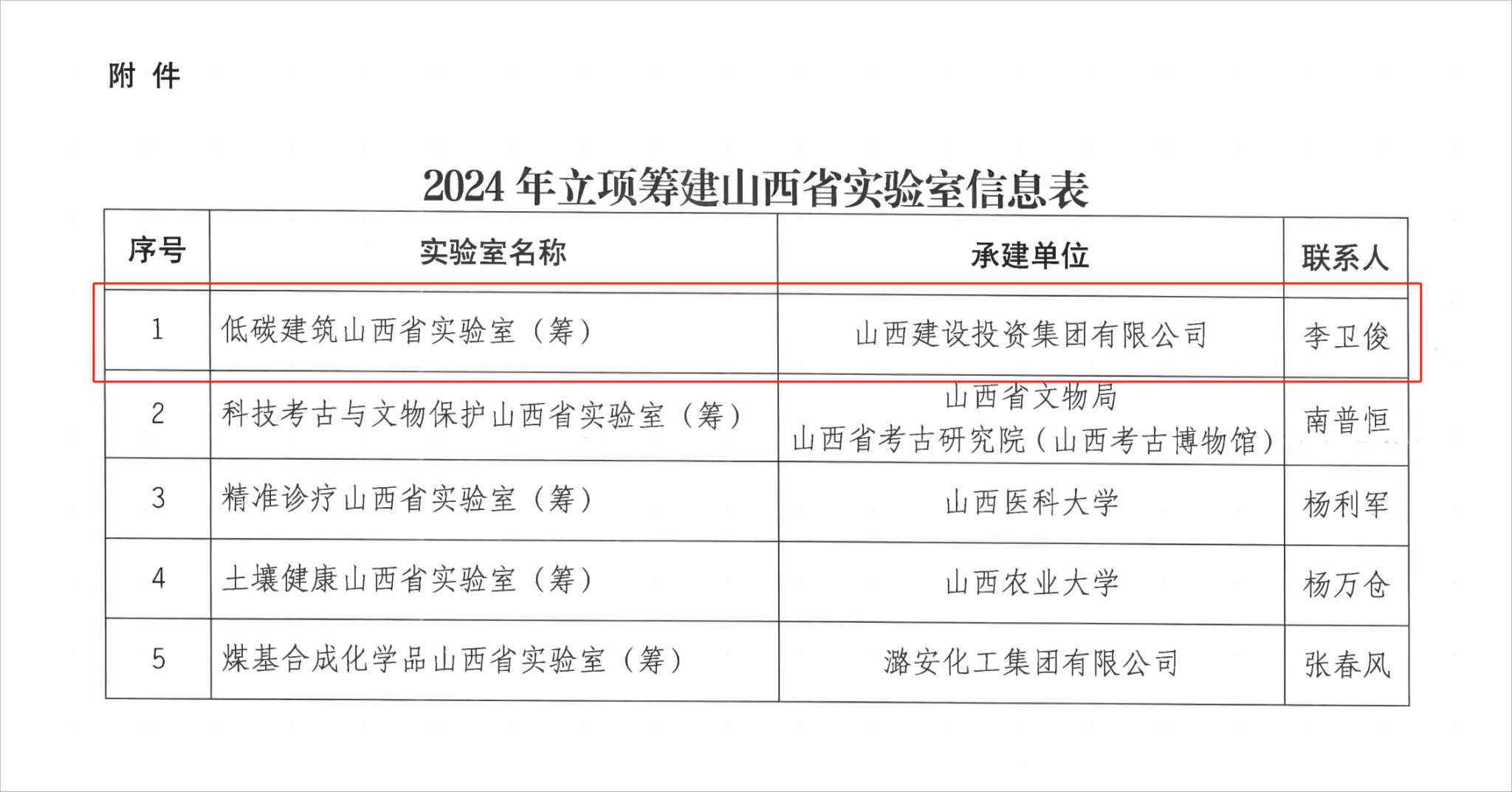 近日,山西省科学技术厅批准筹建5家山西省实验室,山西建投集团筹建的“低碳建筑山西省实验室”名列其中。实验室建成后将成为引领我省低碳建筑科技创新的新型研发机构,有效推动我省建筑业向高端化、低碳化、绿色化、数字化转型发展。