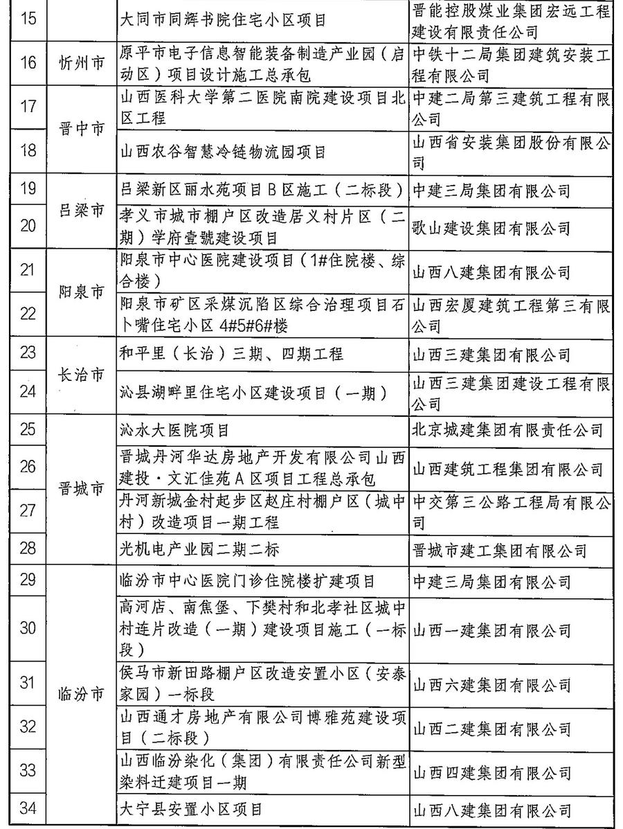 根据《山西省住房和城乡建设厅建筑施工安全生产标准化创建和考评实施细则》,经企业自主申报,省厅组织专家资料审查、现场核查,评定山西一建集团有限公司等14个企业为2023年度“省级安全生产标准化示范企业”,评定滨河东路南延二期工程施工一标段等38个项目为2023年度第二批“省级安全生产标准化示范项目”,且经公示无异议,现将名单予以公布。
