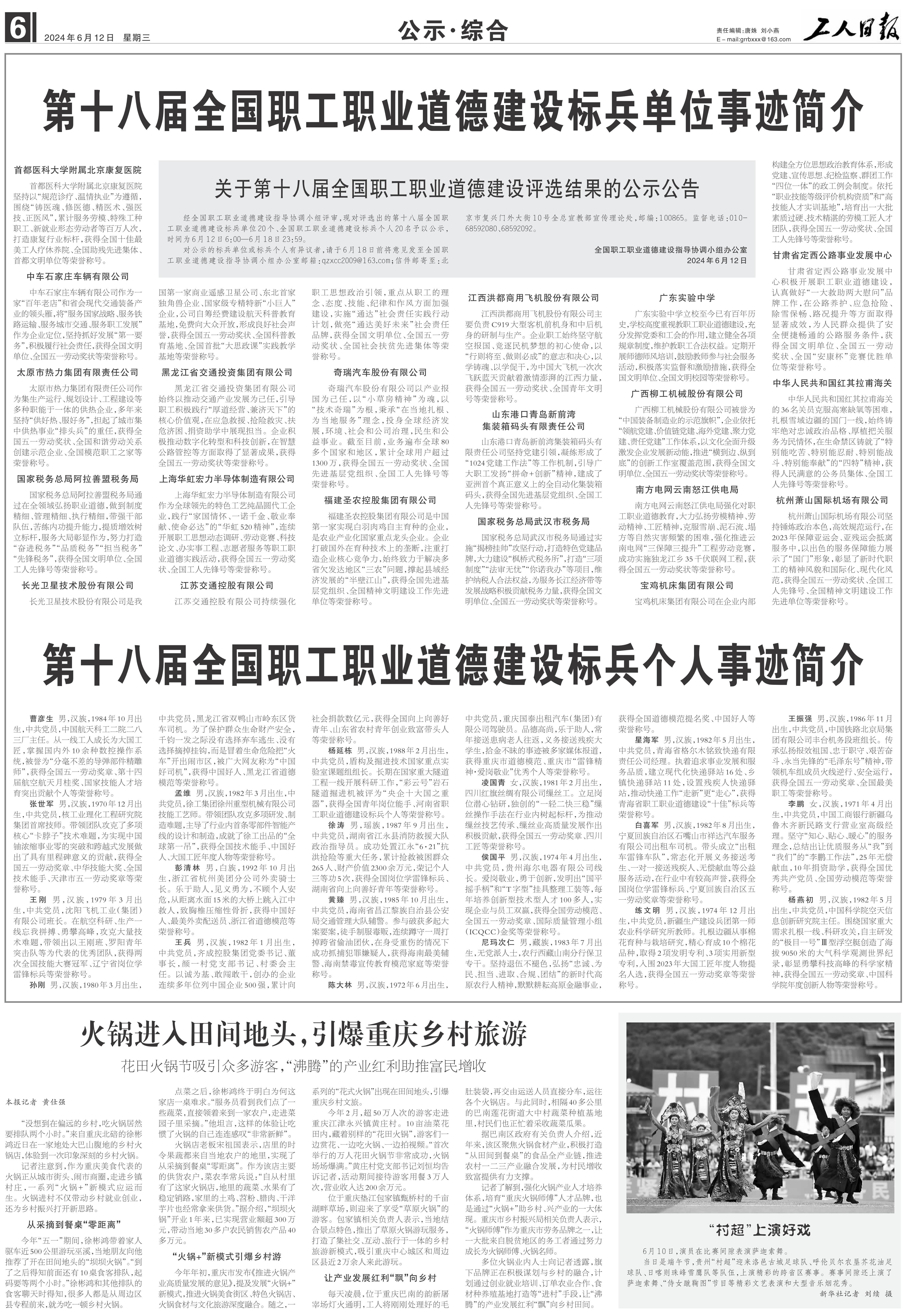 经全国职工职业道德建设指导协调小组评审,现对评选出的第十八届全国职工职业道德建设标兵单位20个、全国职工职业道德建设标兵个人20名予以公示,时间为6月12日6:00—6月18日23:59。