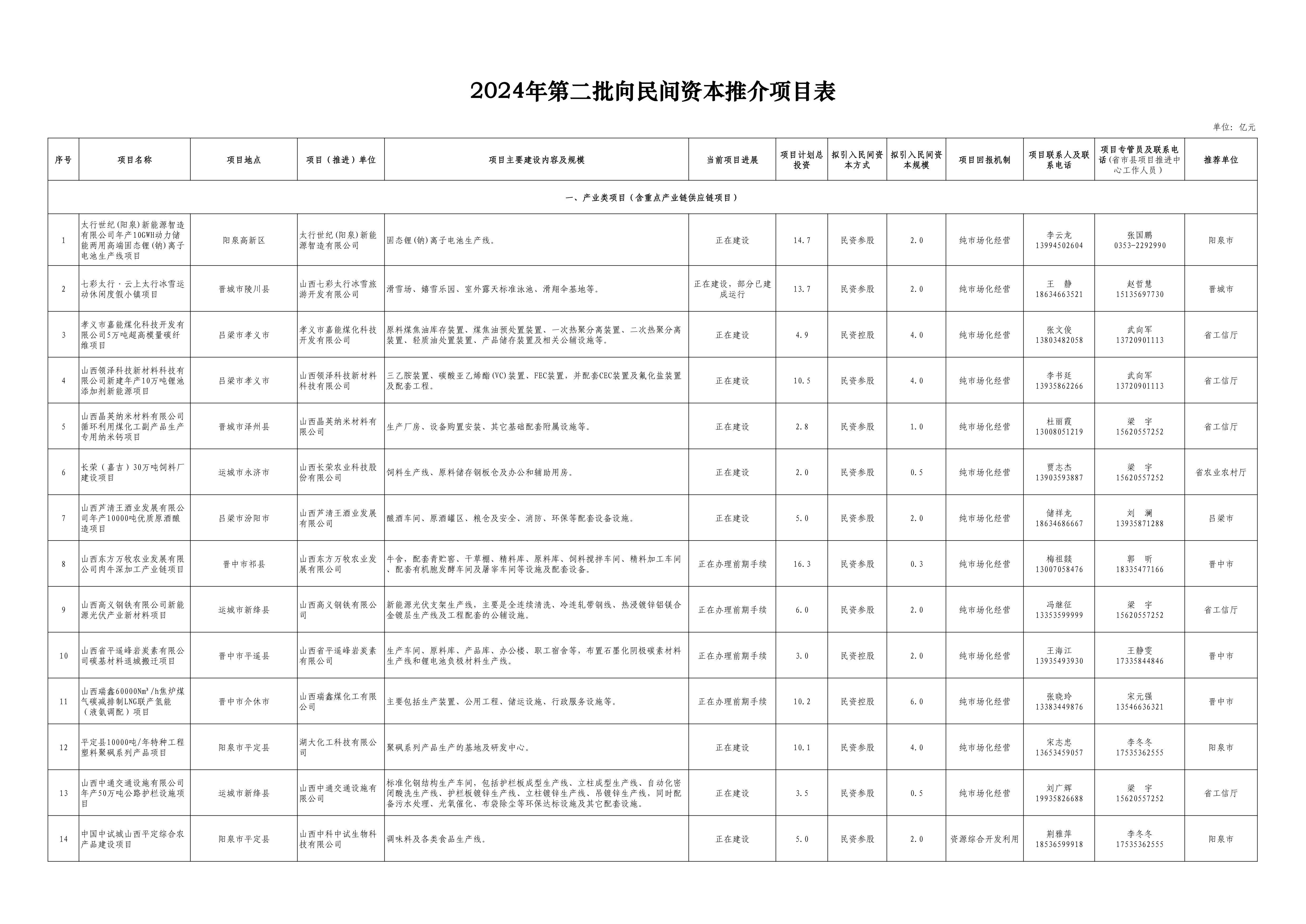 本报太原6月28日讯(记者王蕾)日前,省发展改革委发布了2024年第二批向民间资本推介项目名单,共60个,计划总投资533.3亿元,计划引入民间资本257亿元。