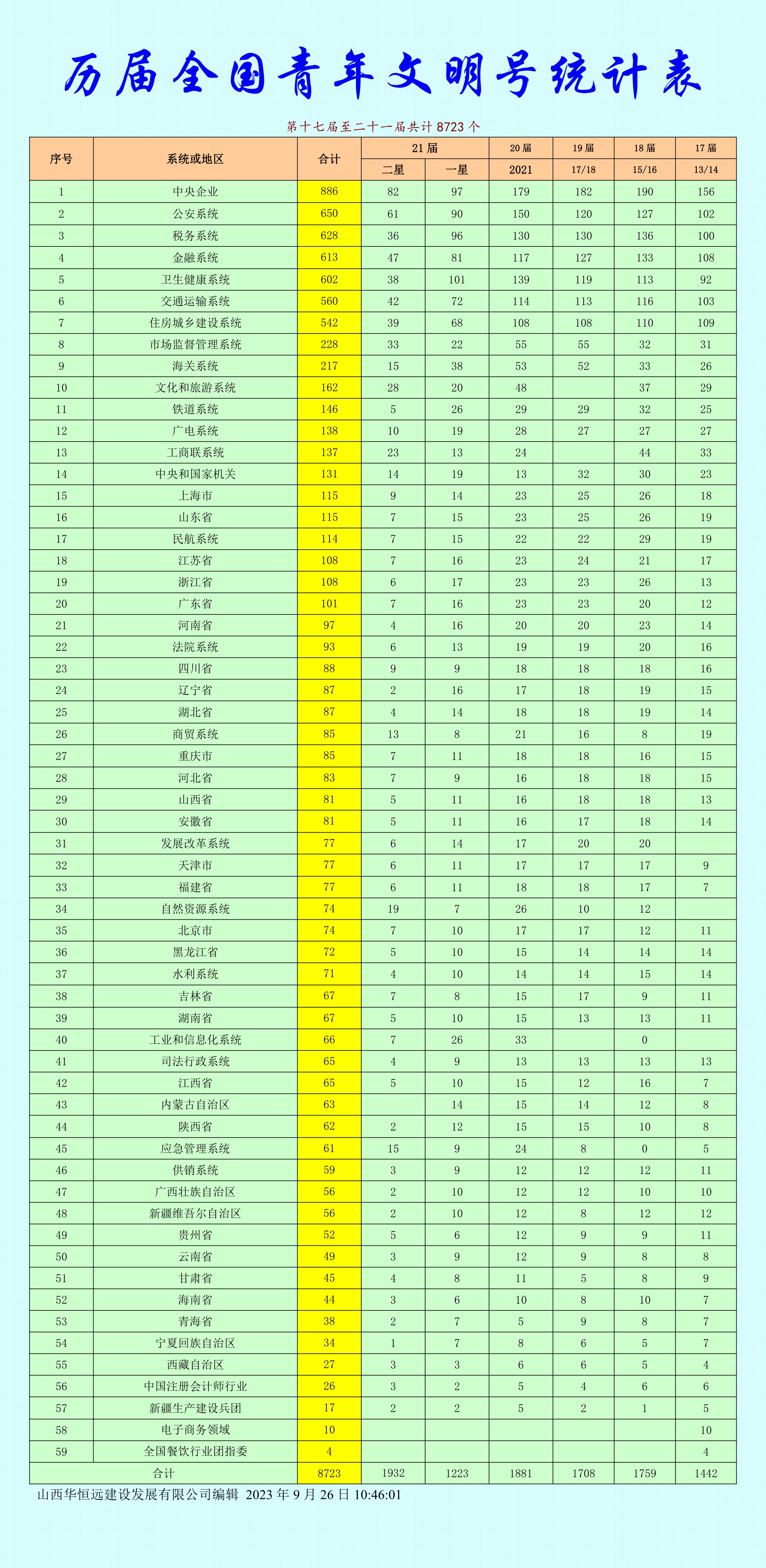 历届全国青年文明号名单