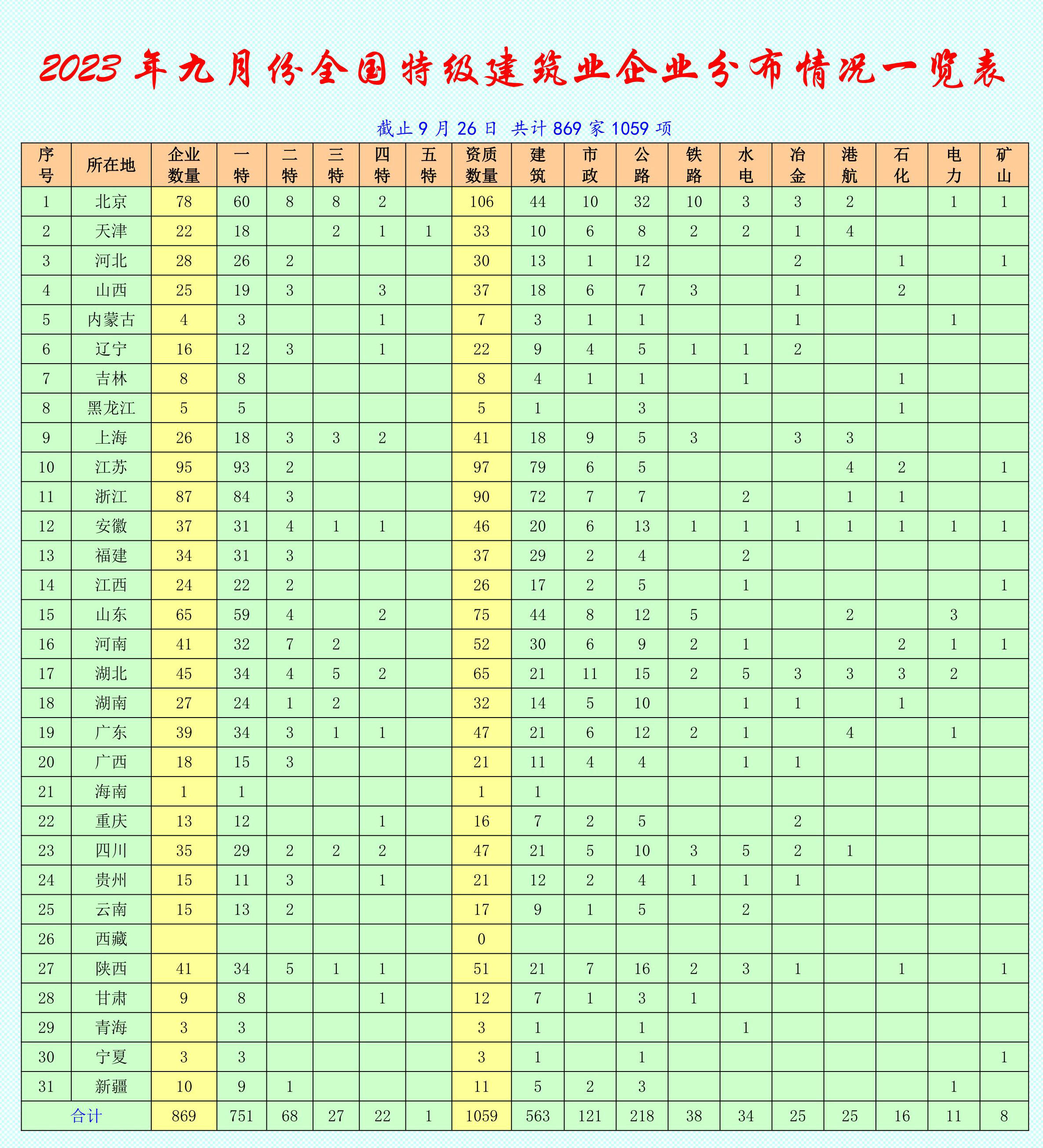 【学习园地】2023年四月份全国特级资质建筑业企业名单829家1019项