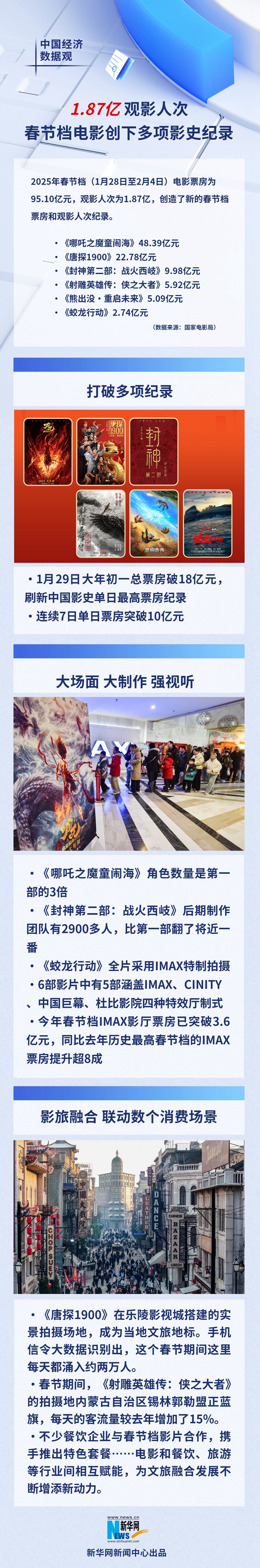 春节假期,这个95亿元的“大项目”你是否有参与?国家电影专资办全国电影票务综合信息管理系统数据显示,截至2月5日9时,2025年春节档总票房为95.10亿元,观影人次为1.87亿,创造了中国电影史上春节档新纪录。其中,山西全省贡献票房2.4亿元,总出票量462.84万张,创下了我省春节档票房新高,在全国各省中位居第17位。