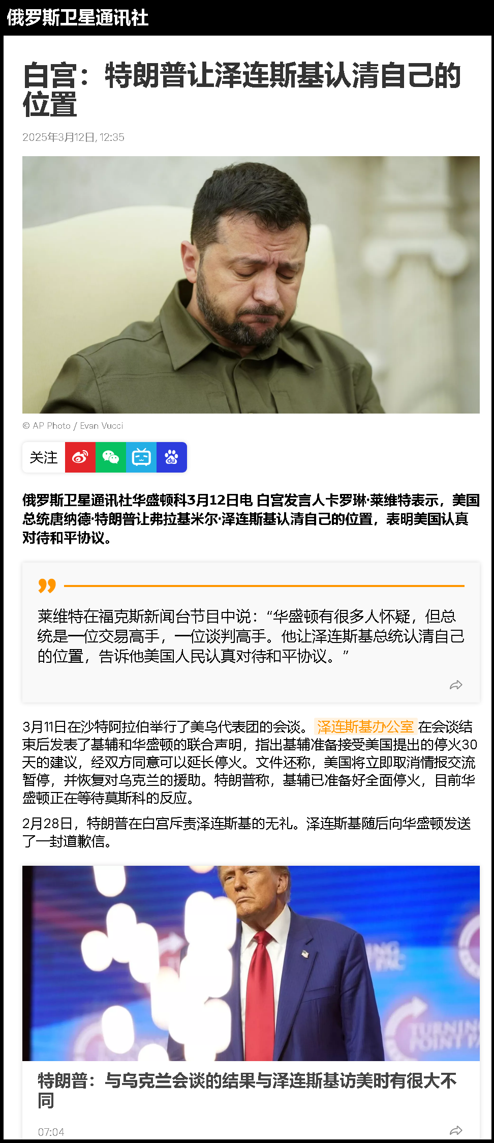 声明最后说,美乌两国总统同意尽快达成一项开发乌克兰关键矿产资源的全面协议,“以加强乌克兰经济,抵消美国援助的成本,并确保乌克兰的长期繁荣和安全”。