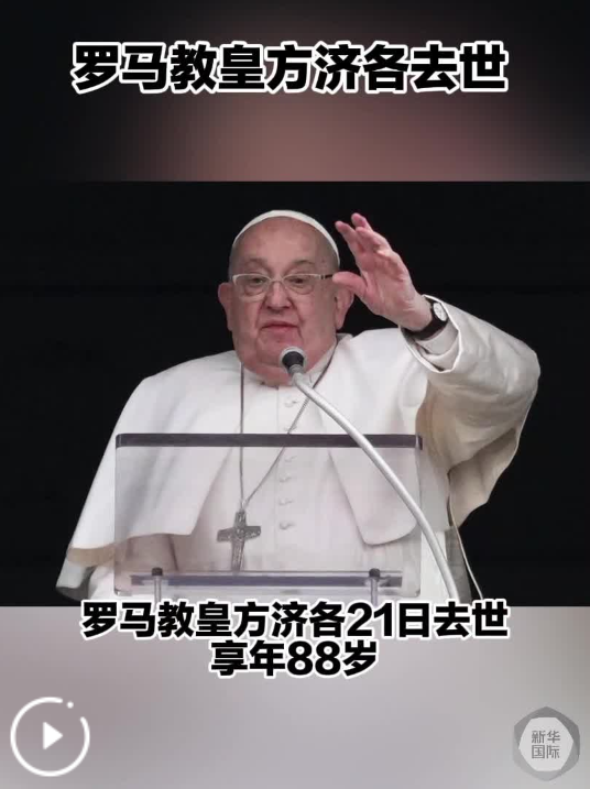 新华社罗马4月21日电 梵蒂冈城消息:罗马教皇方济各21日去世,享年88岁。