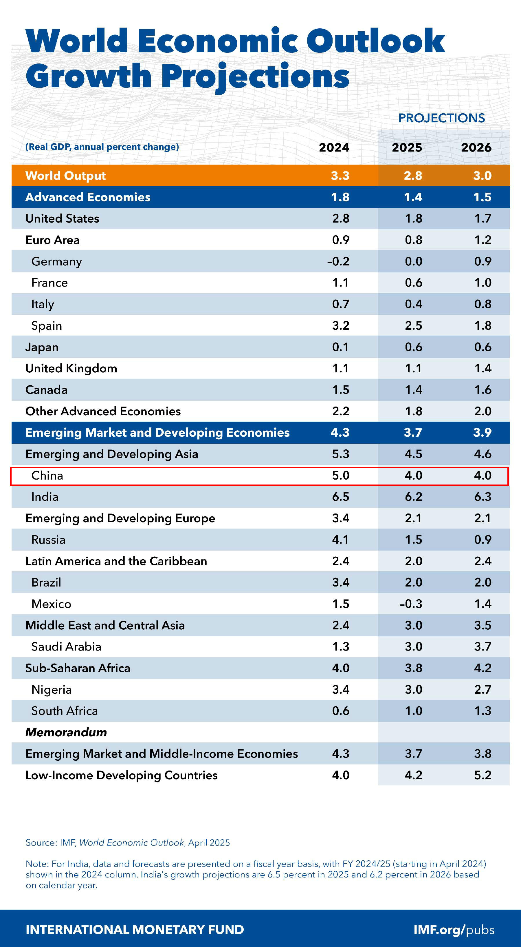 报告显示,2025年发达经济体增速预计为1.4%,新兴市场和发展中经济体增速为3.7%,均较1月预测值下调0.5个百分点。其中,美国经济增速将放缓至1.8%,较1月预测值低0.9个百分点,在发达经济体中下调幅度最大。政策不确定性加剧、贸易紧张局势以及需求势头减弱是下调美国经济增长预期的主要原因。
