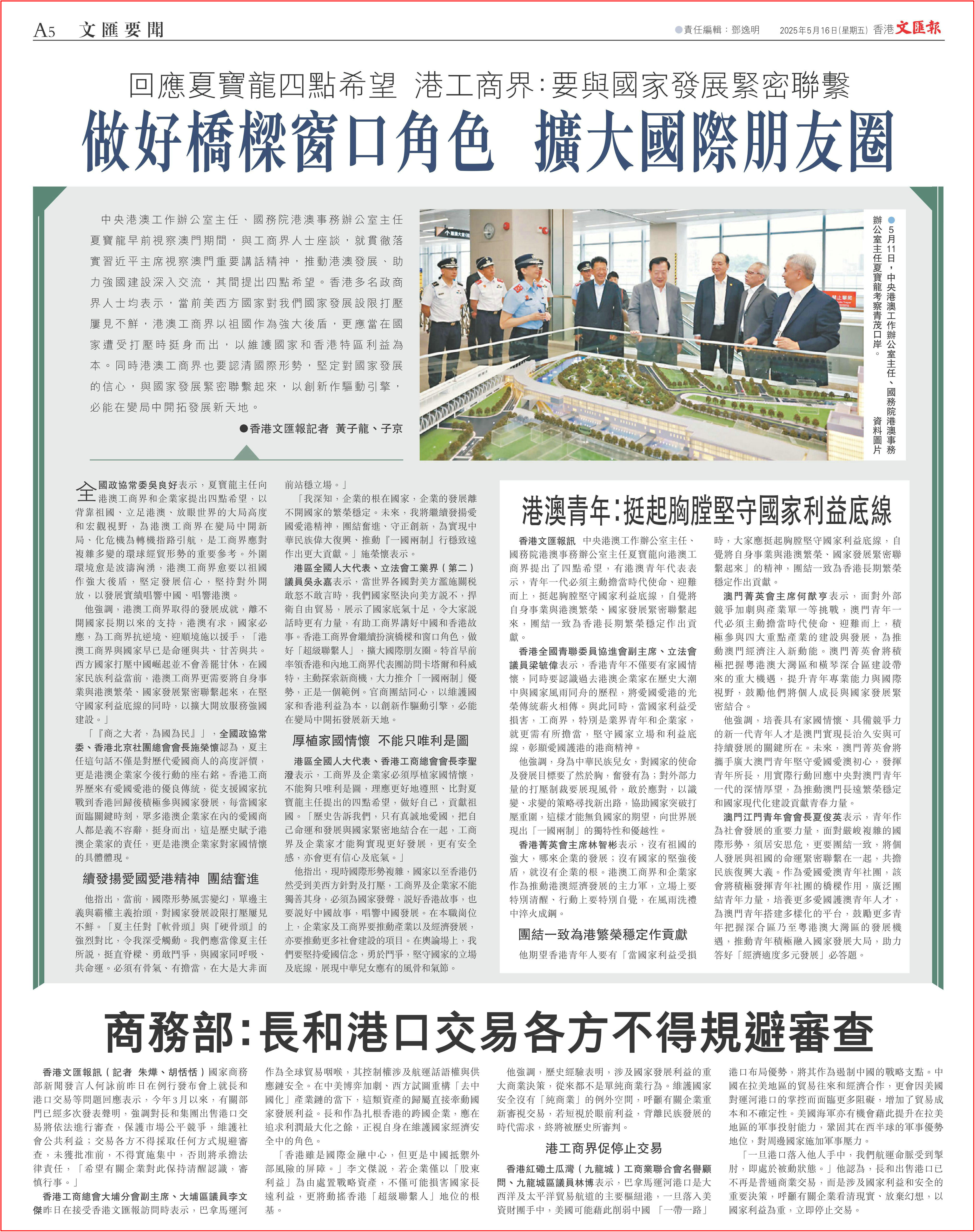 香港工商总会大埔分会副主席、大埔区议员李文杰昨日在接受香港文汇报访问时表示,巴拿马运河作为全球贸易咽喉,其控制权涉及航运话语权与供应链安全。在中美博弈加剧、西方试图重构「去中国化」产业链的当下,这类资产的归属直接牵动国家发展利益。长和作为扎根香港的跨国企业,应在追求利润最大化之余,正视自身在维护国家经济安全中的角色。