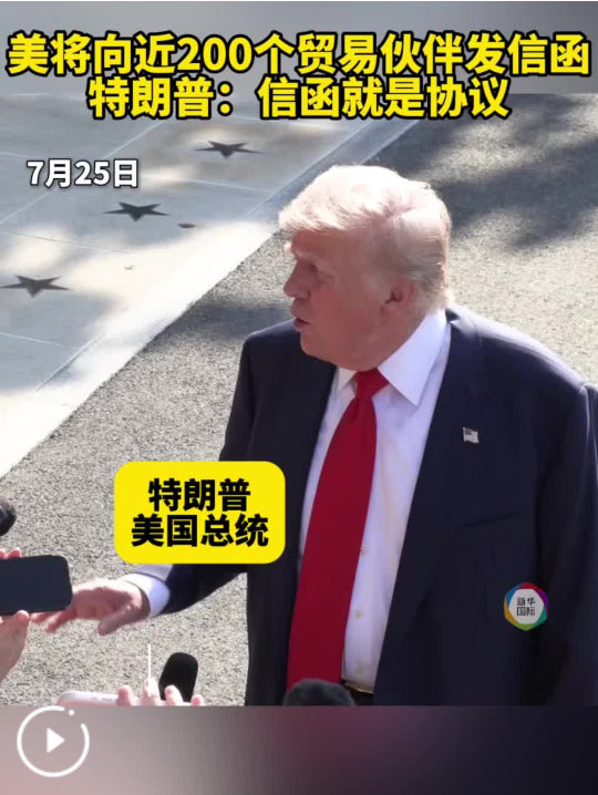 特朗普25日还说,大多数协议已经敲定。不过他所说的协议不是经双边谈判达成的自由贸易协定,而是美国单方面发出的信函。