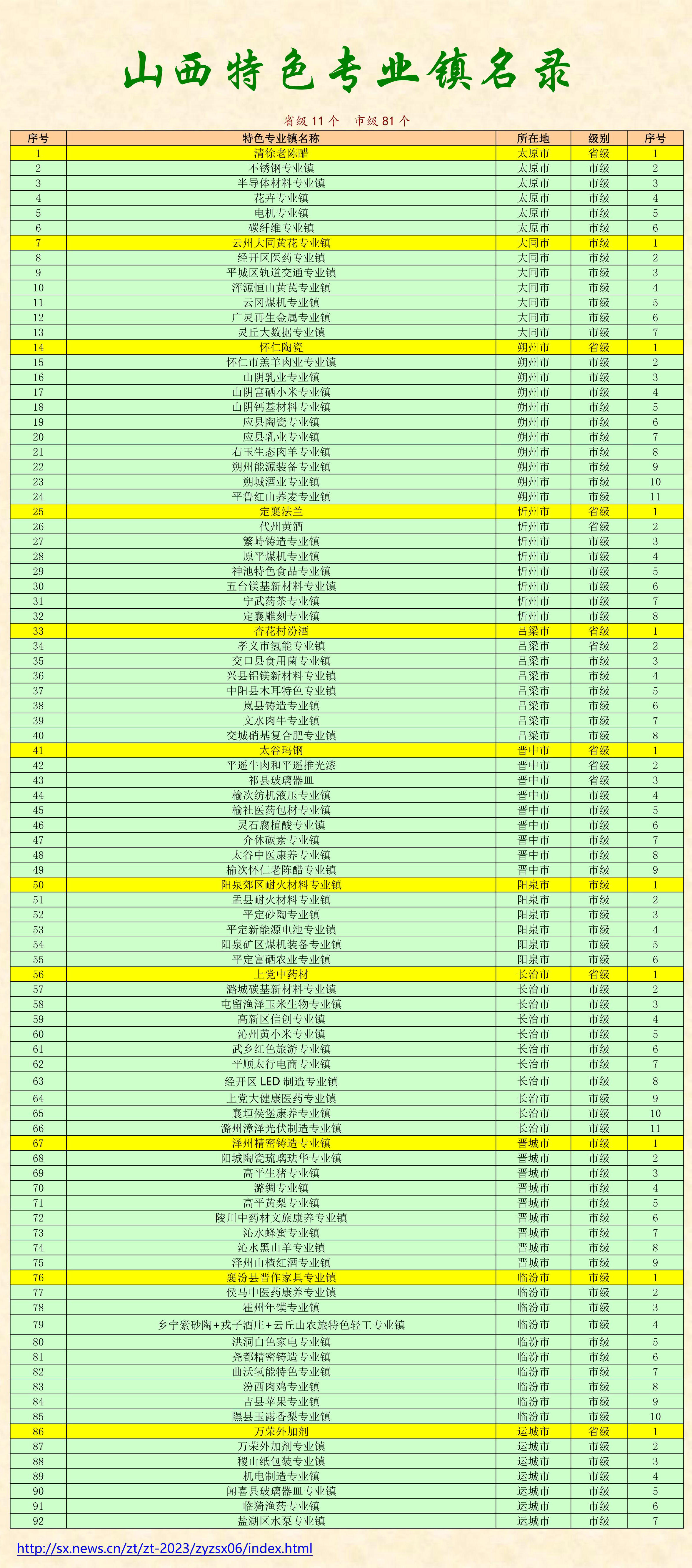 截至目前,山西共有92个省级、市级专业镇。这92个专业镇都有哪些?分布在哪里?有何特色?新华网山西频道新晋青年工作室开发设计“山西省专业镇全景图”,全景式梳理展示各专业镇特色清单,让你一键掌握山西92个特色专业镇的各自情况、亮点、特色。