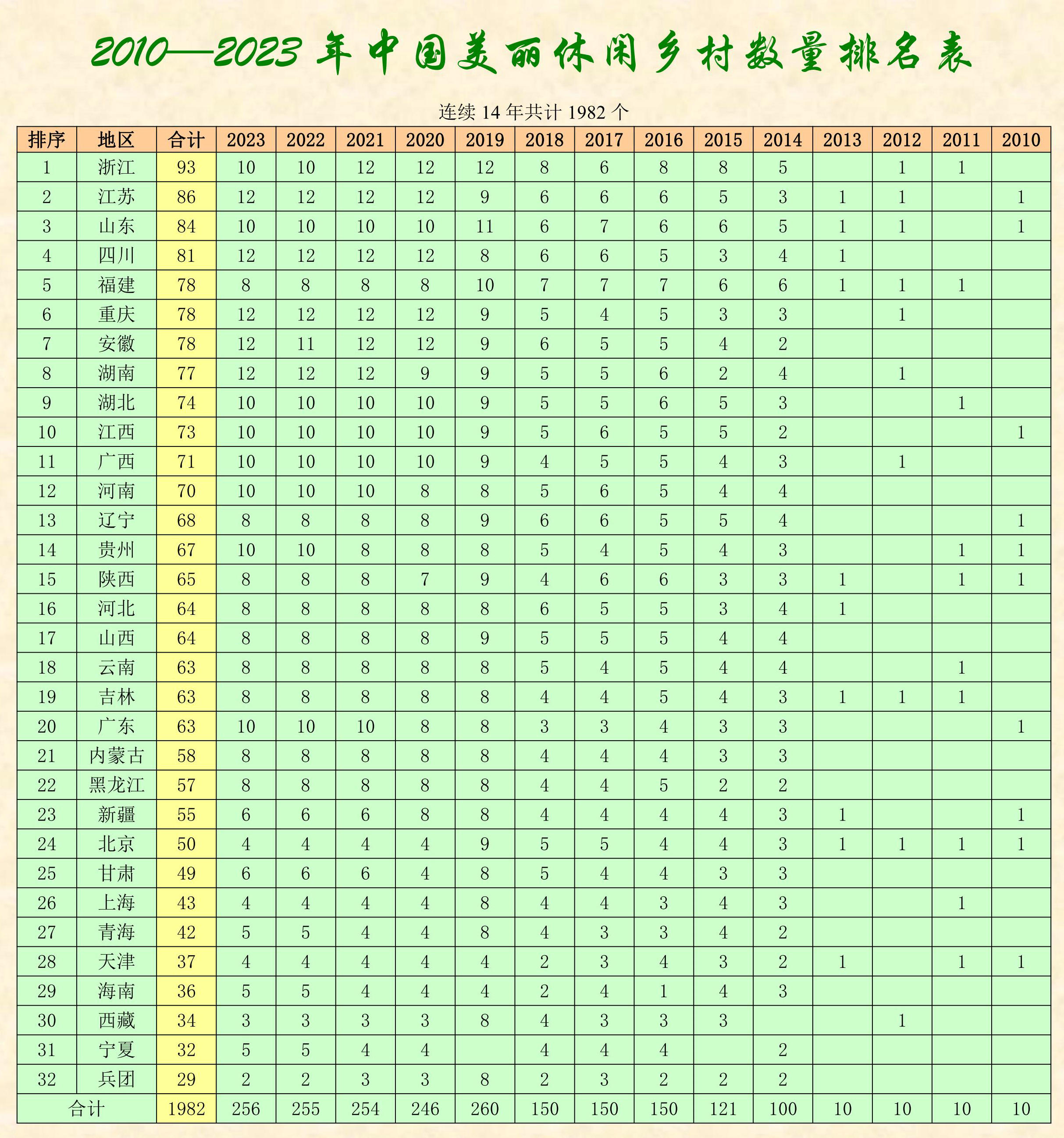 【行业资料】2010-2022中国美丽休闲乡村名录