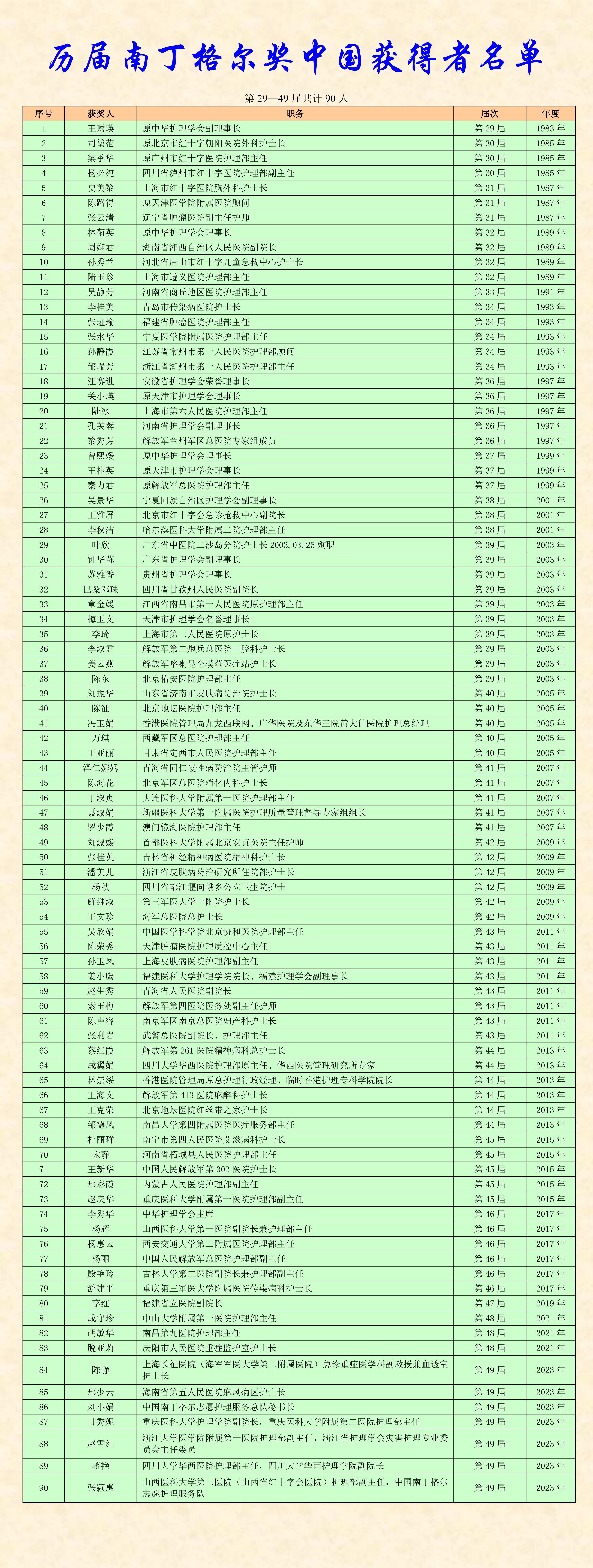 90 张颖惠 山西医科大学第二医院(山西省红十字会医院)护理部副主任,中国南丁格尔志愿护理服务队 第49届 2023年