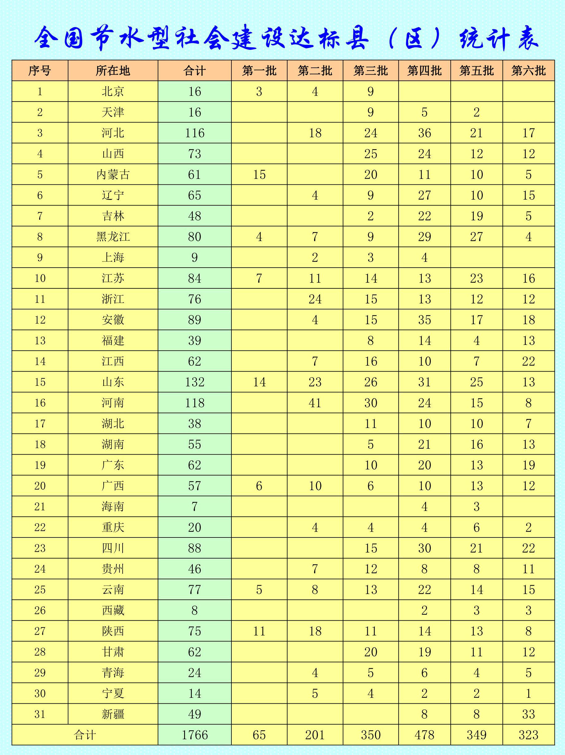 第六批节水型社会建设达标县(区)名单