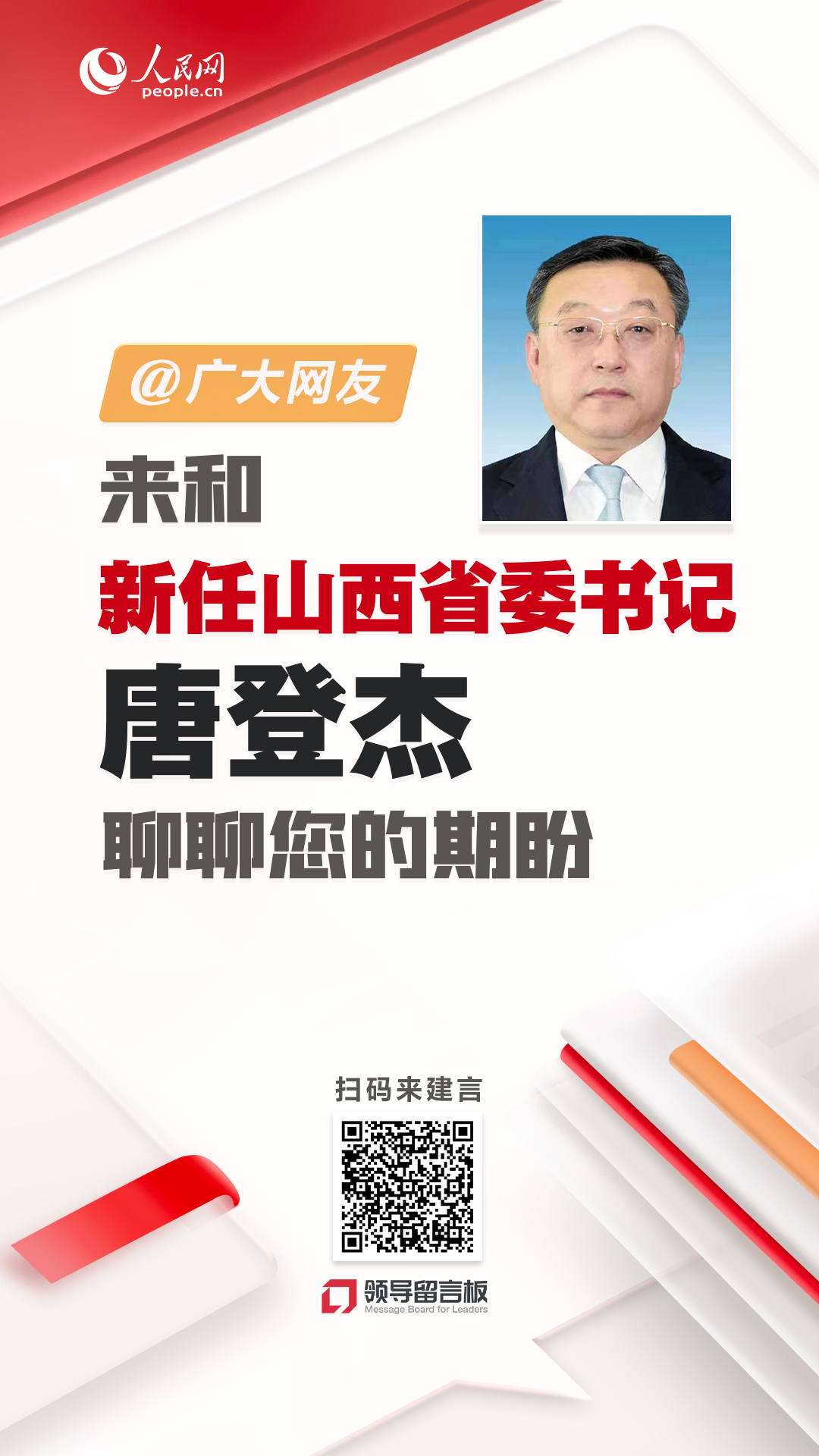 目前,不少群众已通过人民网“领导留言板”给唐登杰书记留言,反映自己的所思所盼,也为扎实推进山西高质量发展、进一步加快美丽山西建设建言献策。