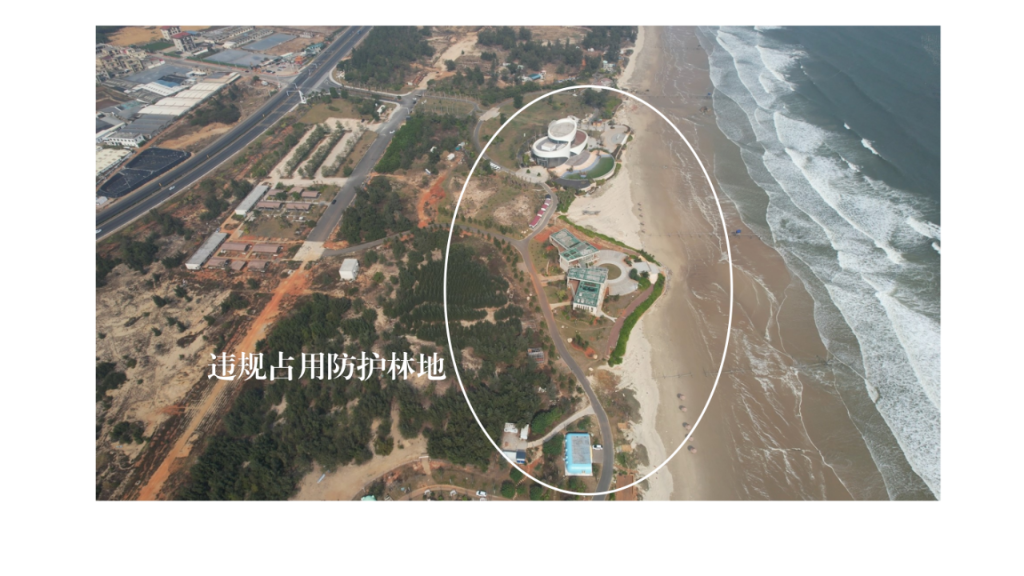 2023年11月24日,督察组现场督察发现,漳浦县七星海旅游度假区违规占用防护林地。(督察组供图)