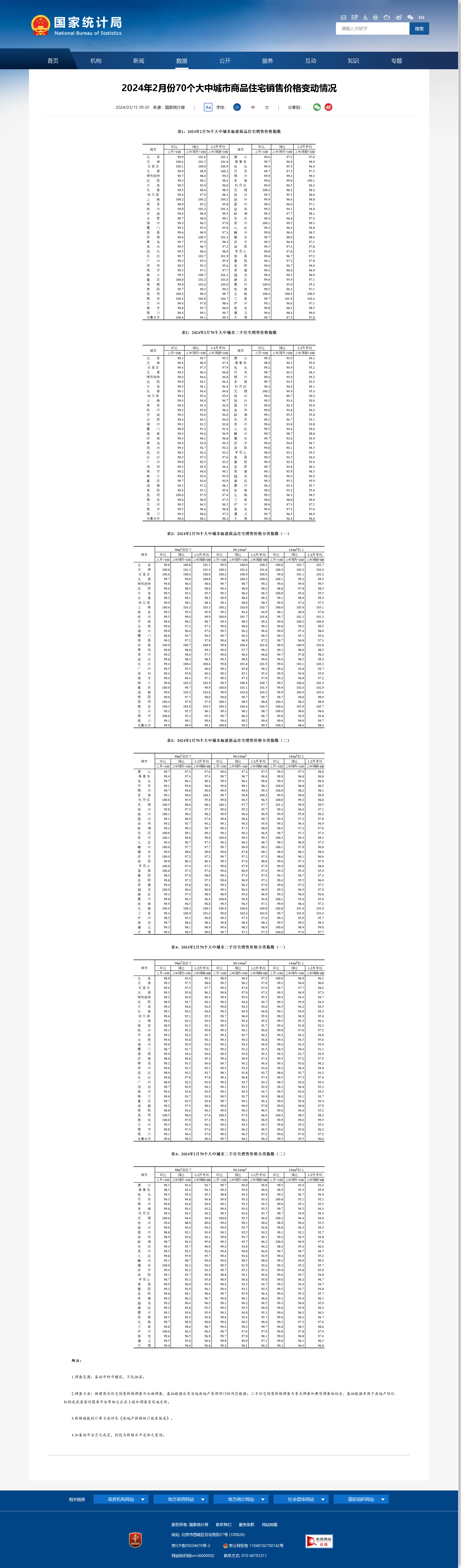 2024年2月份70个大中城市商品住宅销售价格变动情况