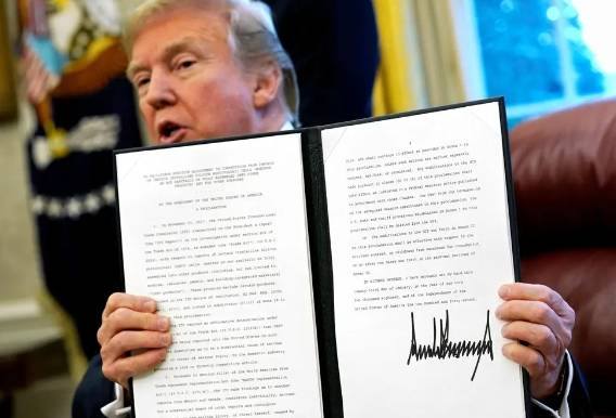 2018年1月,特朗普签署对进口洗衣机和太阳能电池板征收关税的总统令。路透社