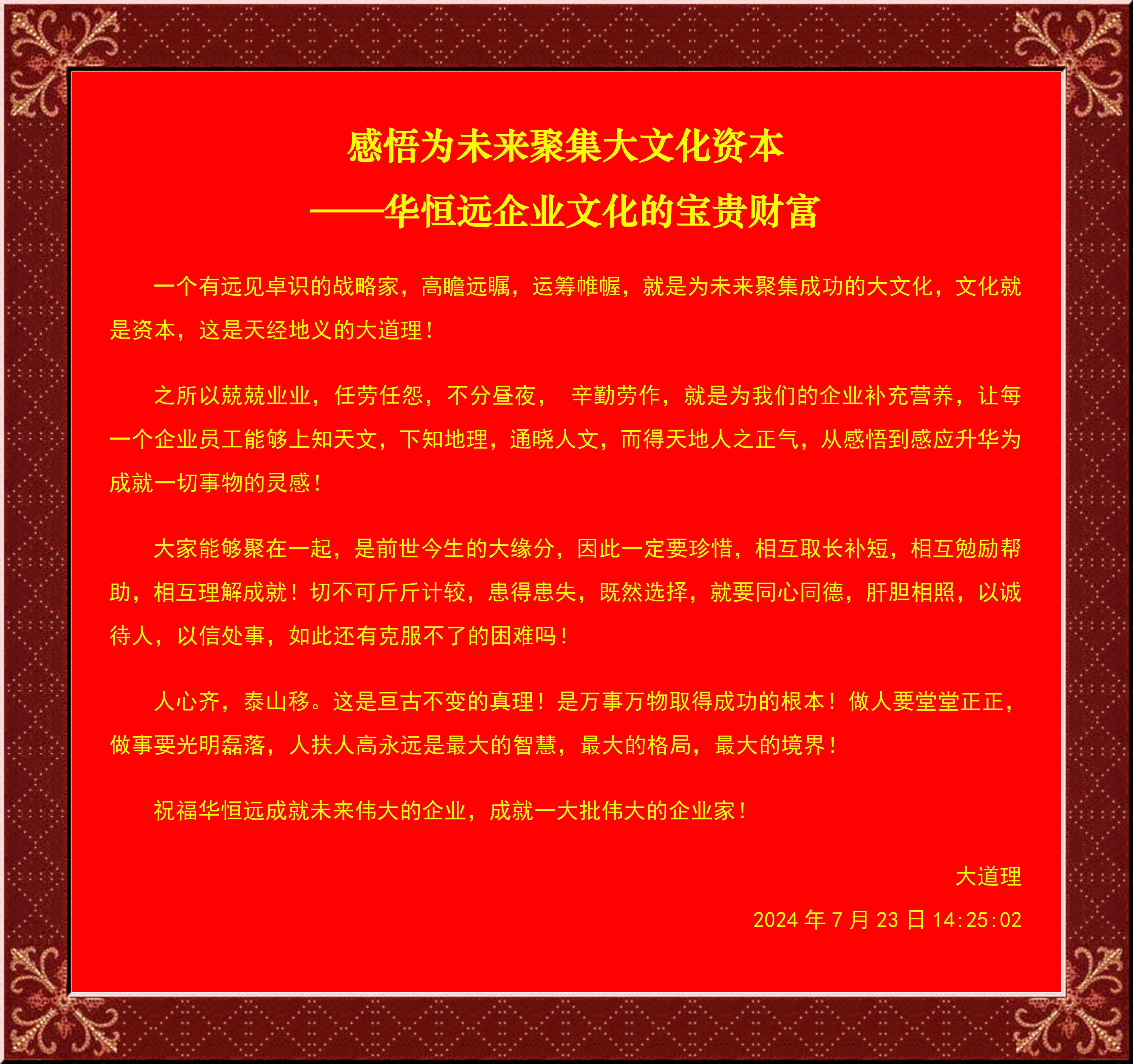 之所以兢兢业业,任劳任怨,不分昼夜, 辛勤劳作,就是为我们的企业补充营养,让每一个企业员工能够上知天文,下知地理,通晓人文,而得天地人之正气,从感悟到感应升华为成就一切事物的灵感!