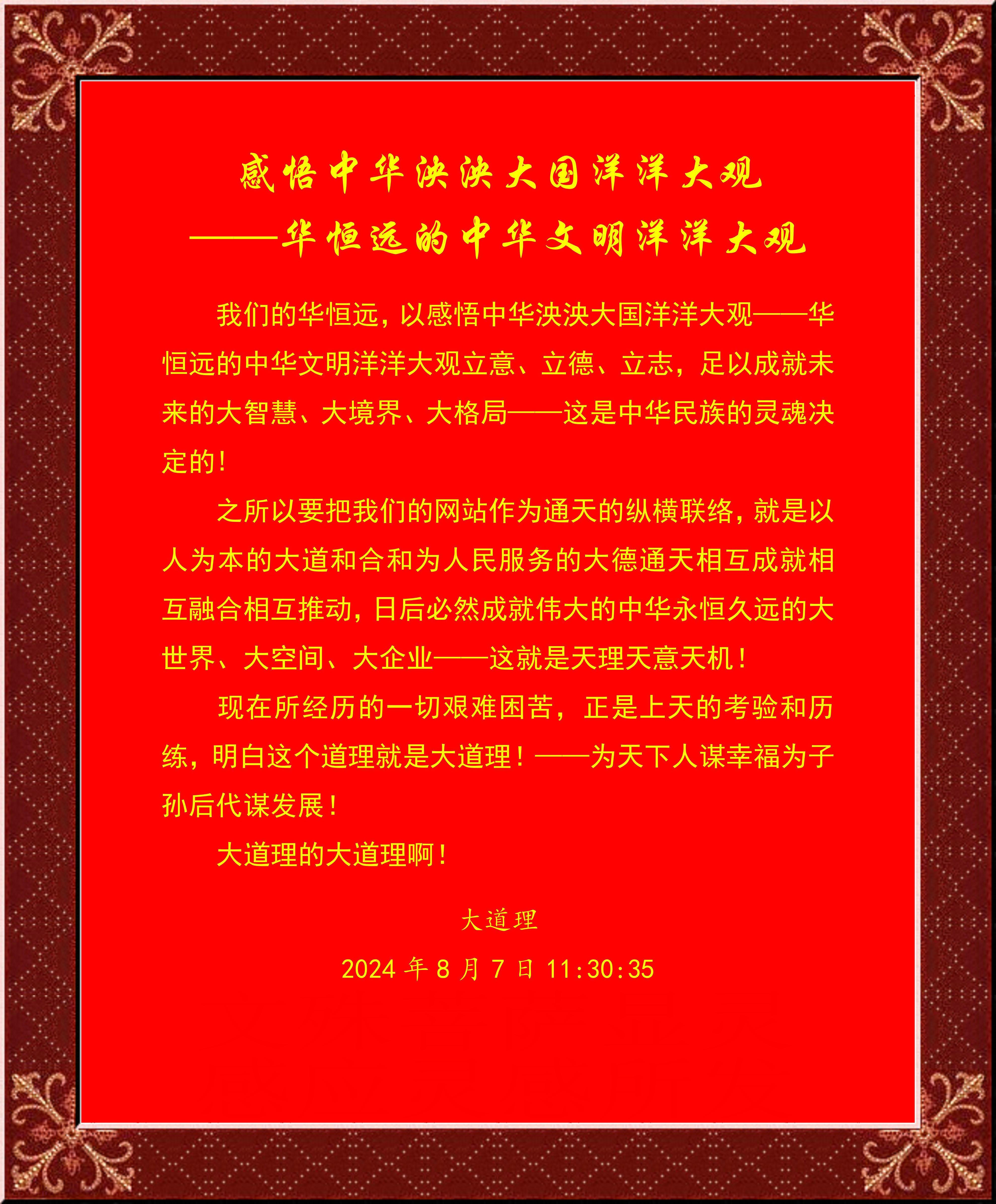 我们的百乐博bIbo,以感悟中华泱泱大国洋洋大观——百乐博bIbo的中华文明洋洋大观立意、立德、立志,足以成就未来的大智慧、大境界、大格局——这是中华民族的灵魂决定的!