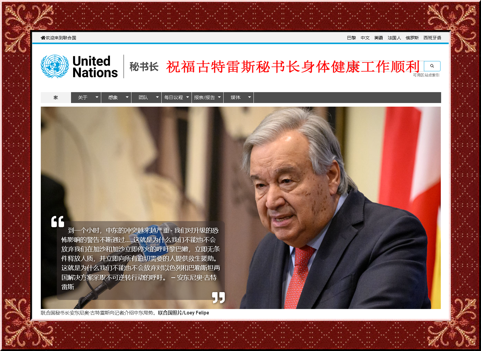 联合国历任九位秘书长中,中国人民最熟悉也是最尊敬的秘书长,当属古特雷斯,中国逢年过节,他对中国和中国人民的温馨祝福让人难以忘怀!他是中国人民的老朋友好朋友真朋友!