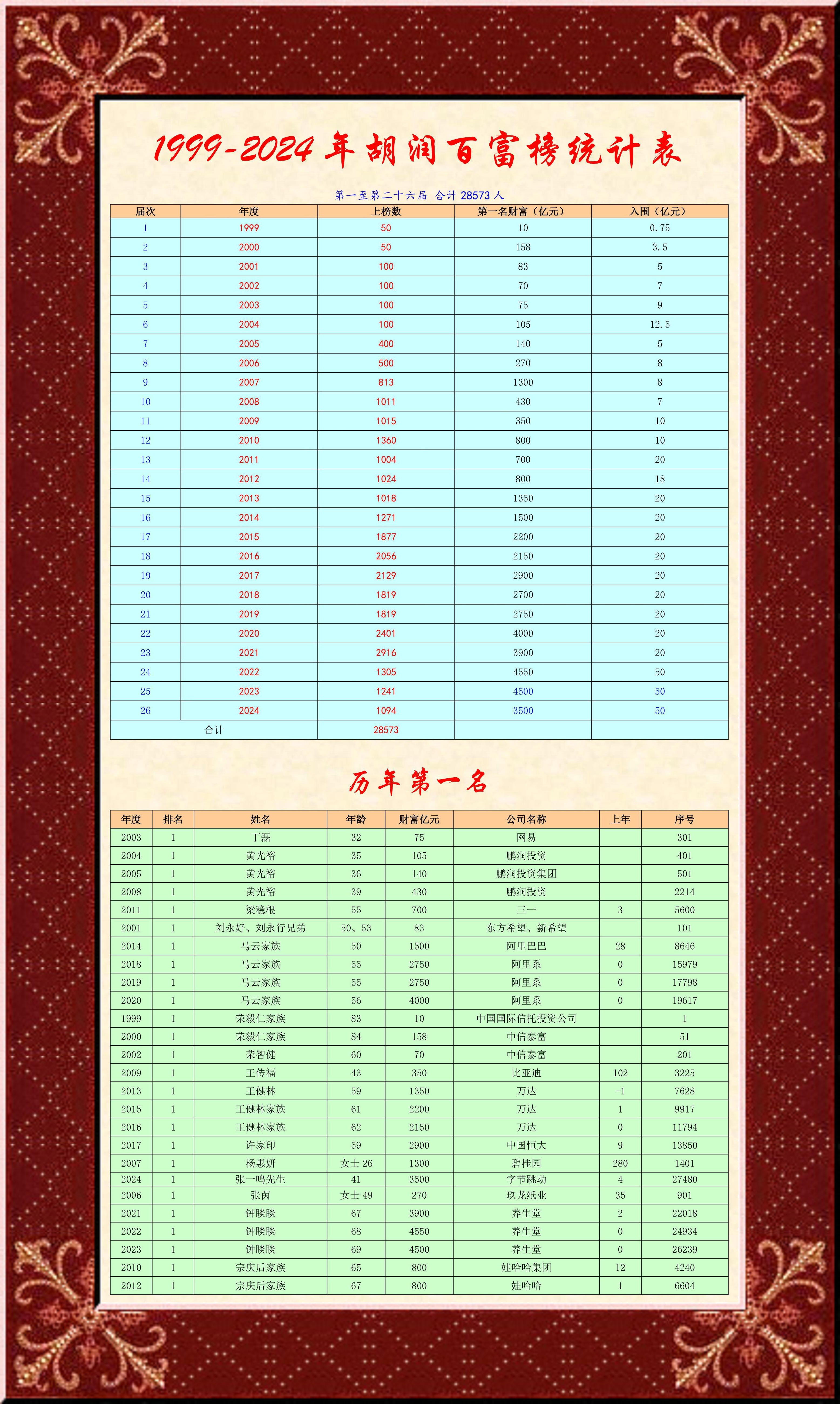 今天,胡润发布第26届中国百富榜,1094位民营企业家荣登榜单。该榜单详尽分析了民营企业发展各种要素和企业家们天时地利人和以及境界格局智慧,尤其是用中华传统人文观对企业和企业家发展空间的探察考究,剖析透彻,知微见著,有理有据,可谓是上上作!