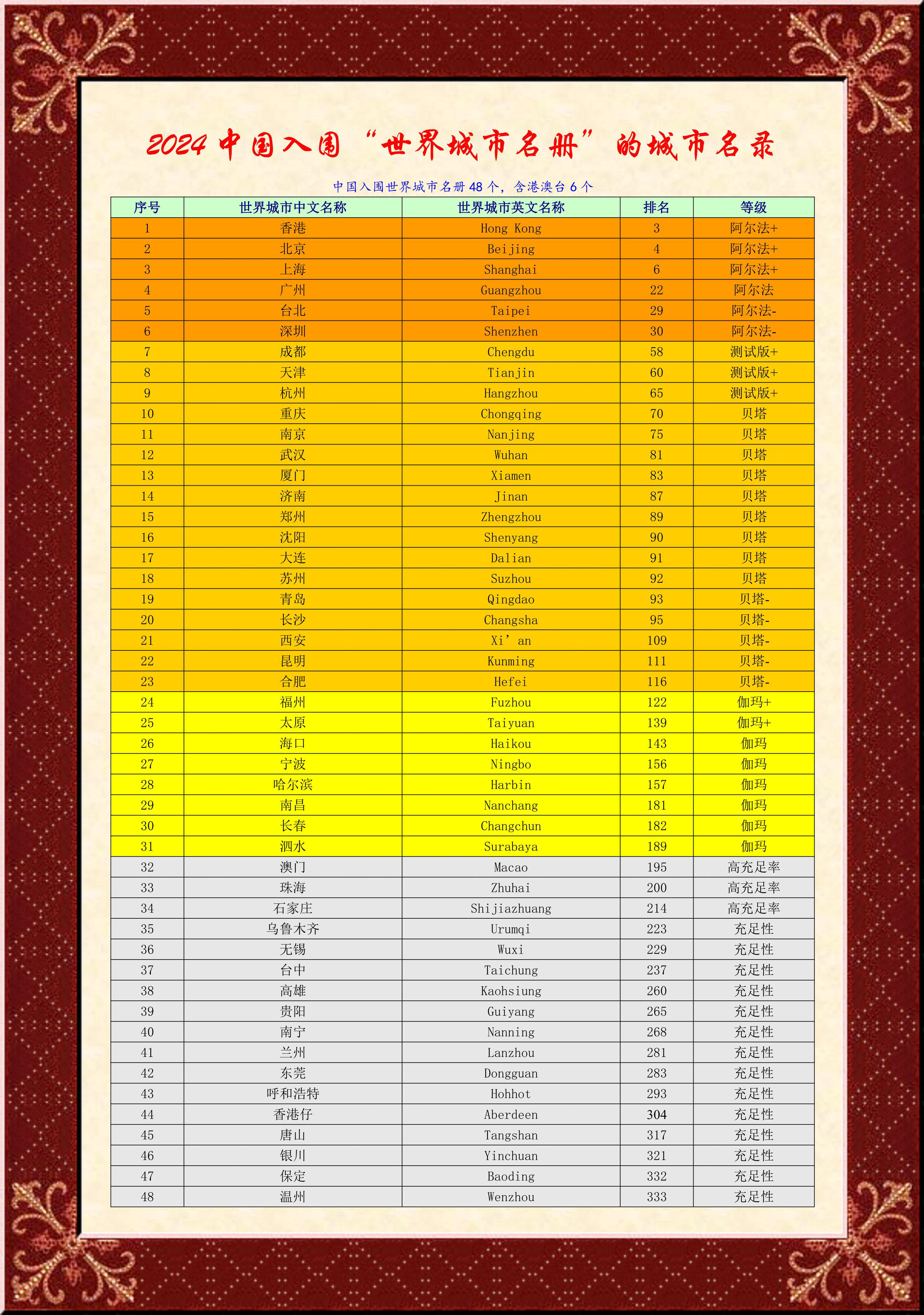 阿尔法和阿尔法城市将主要经济地区和国家连接到世界经济中的非常重要的世界城市。